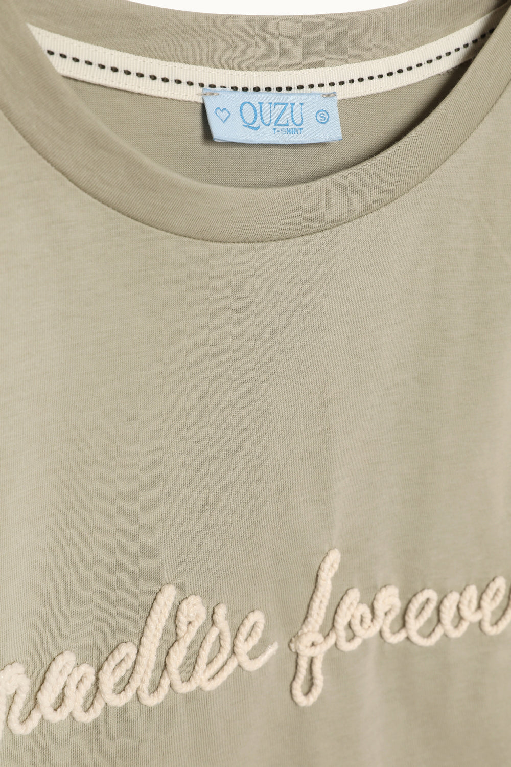 Yazı Nakışlı Kolsuz Crop Tişört Haki