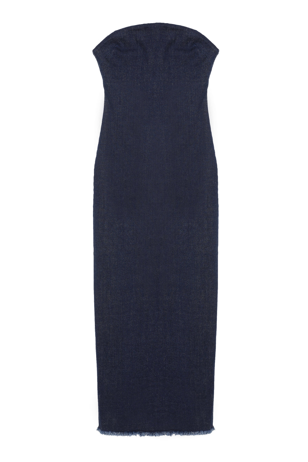 Straplez Detaylı Kot Uzun Elbise Mavi