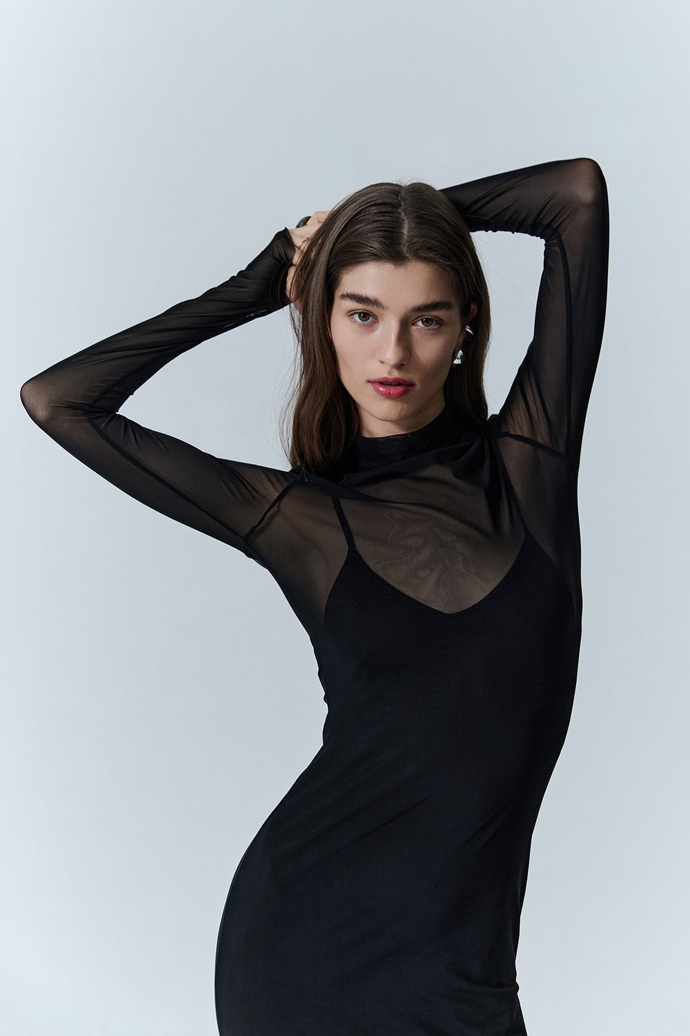 Sırtı Çapraz Askılı Midi Elbise Siyah