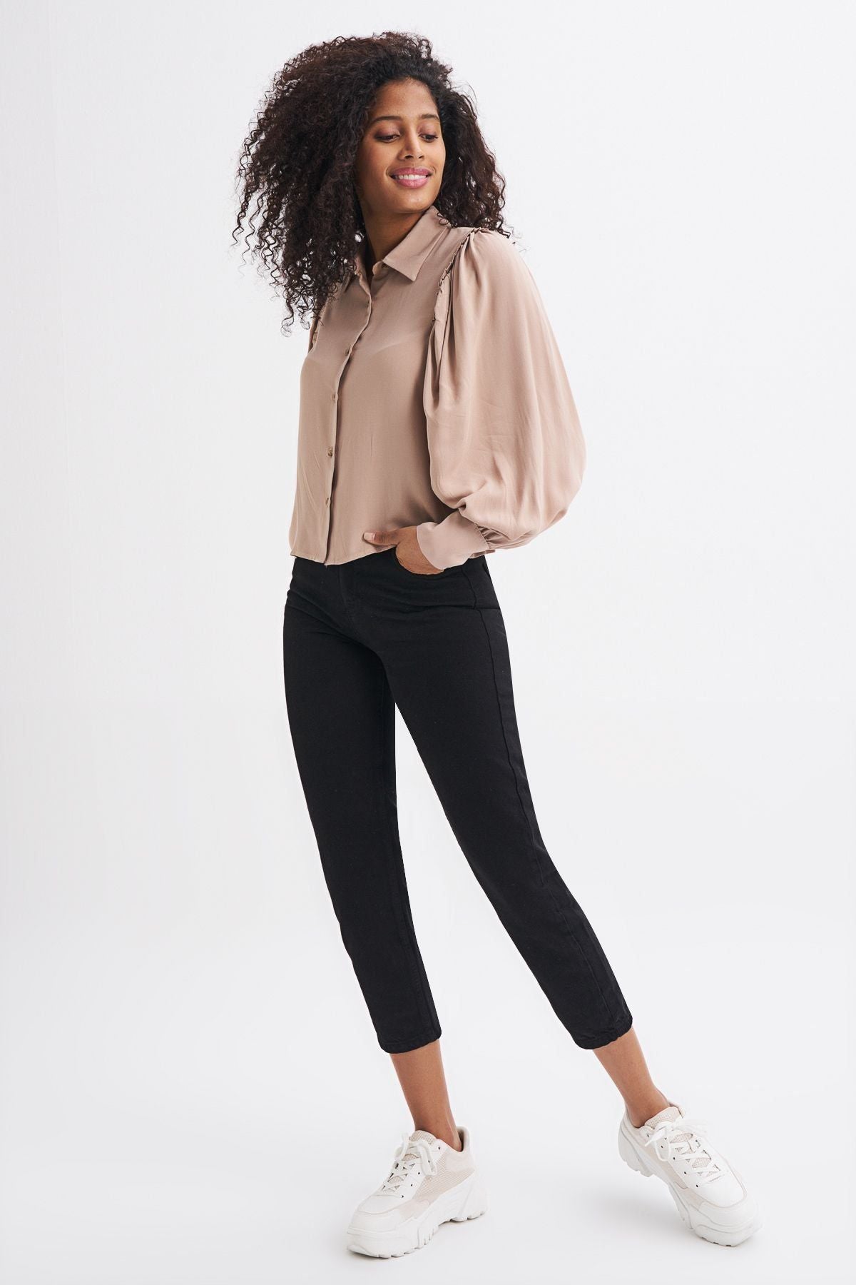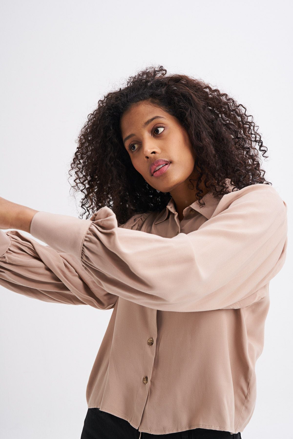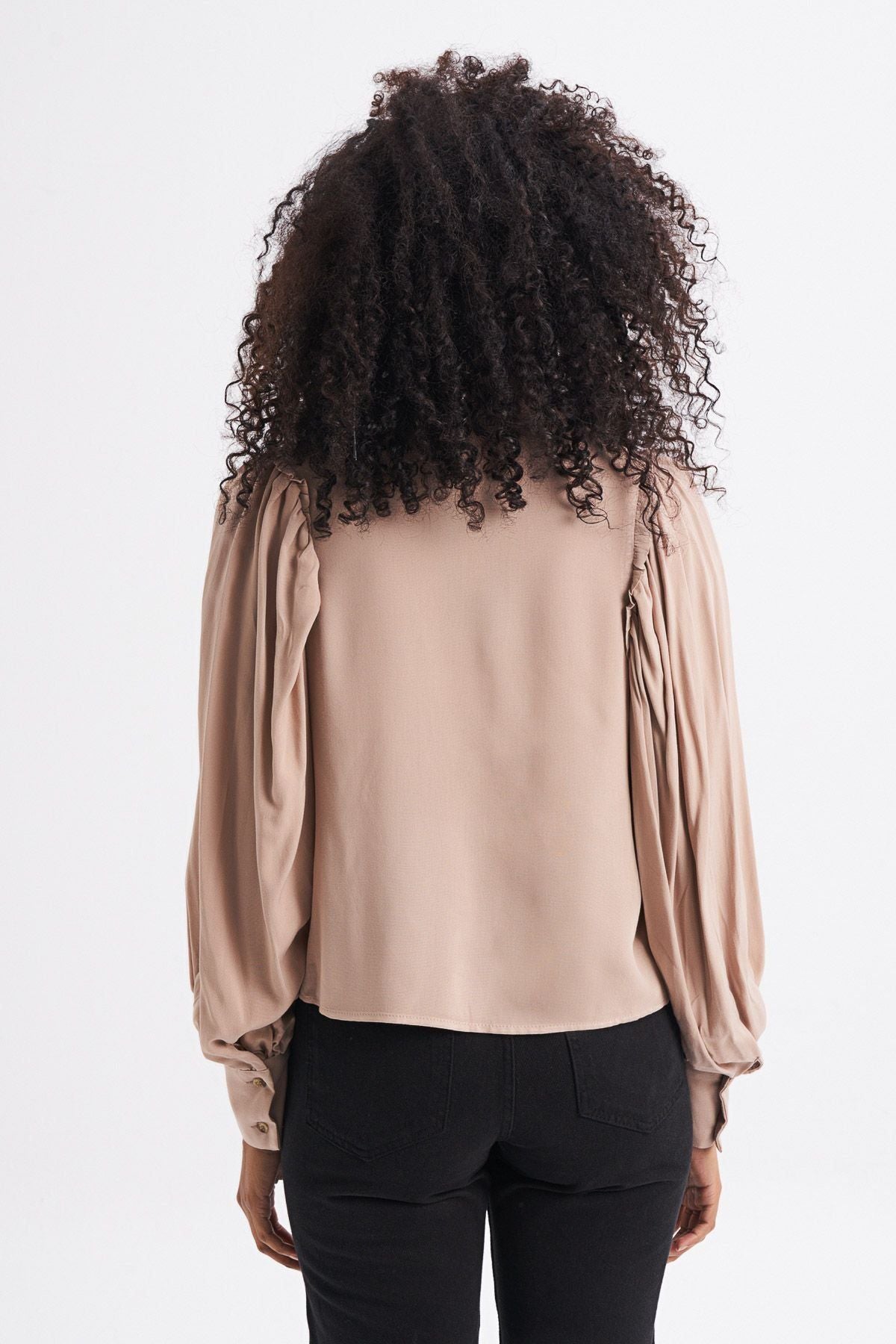 Balon Kol Fırfır Detaylı Gömlek Vizon