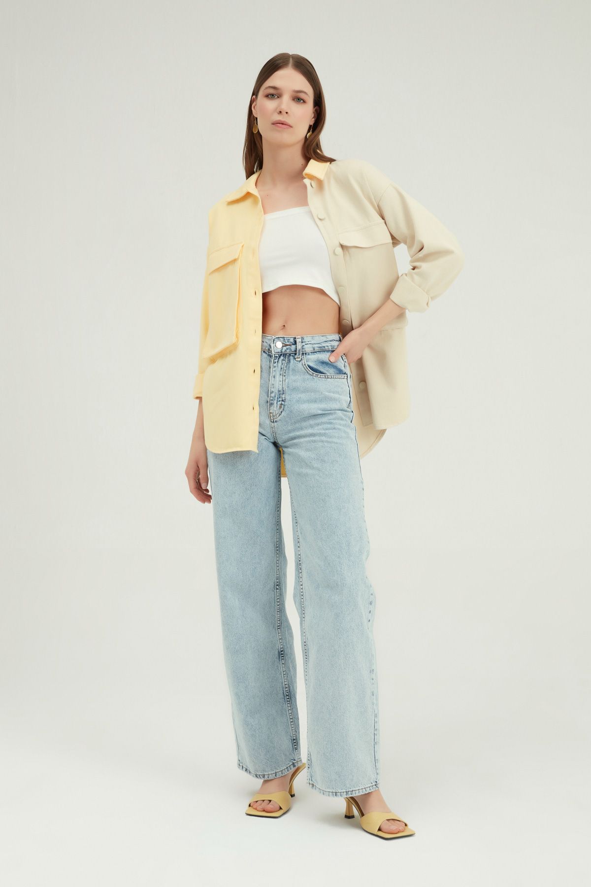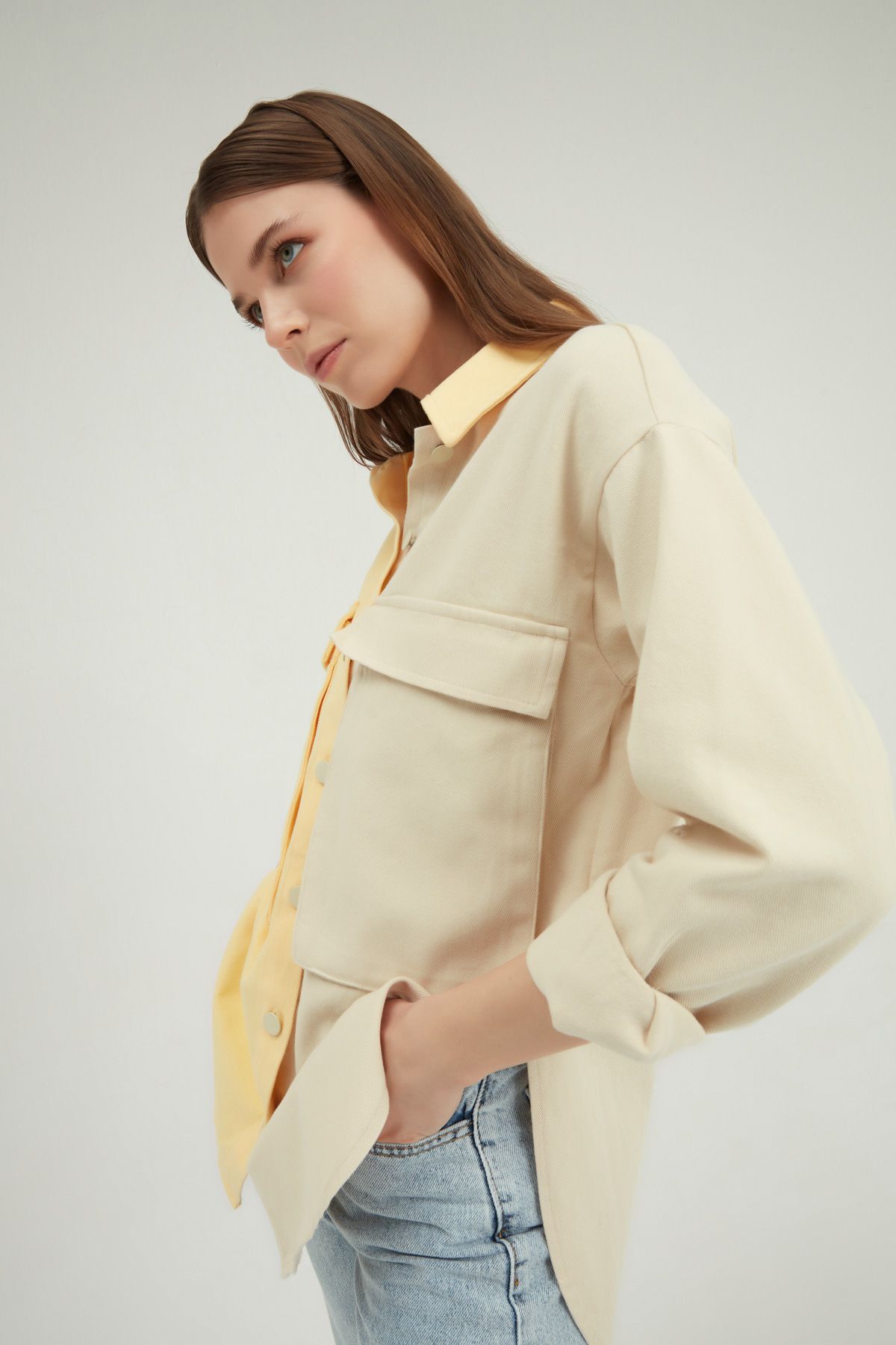 İki Renkli Cepli Gabardin Gömlek Sarı