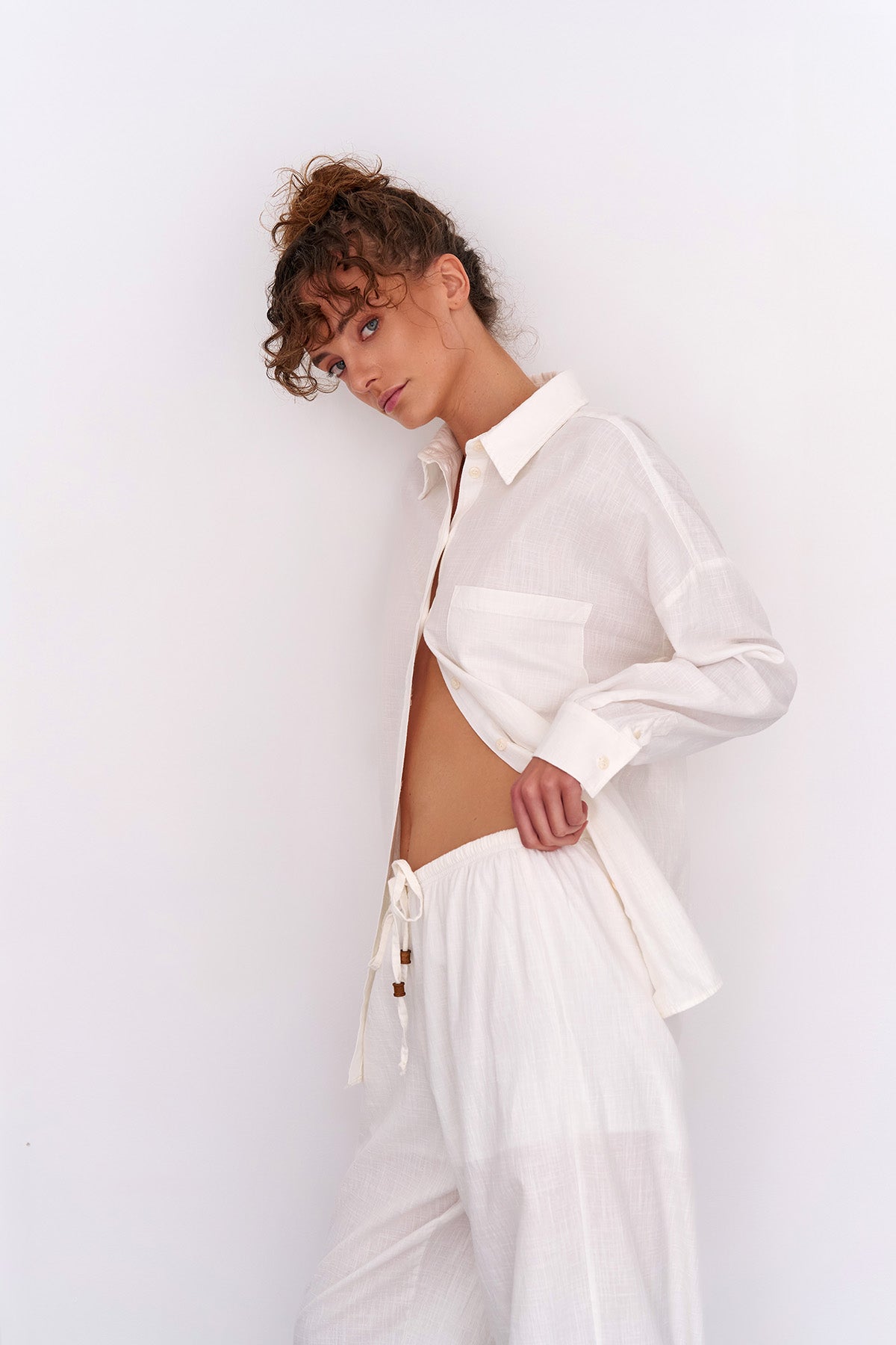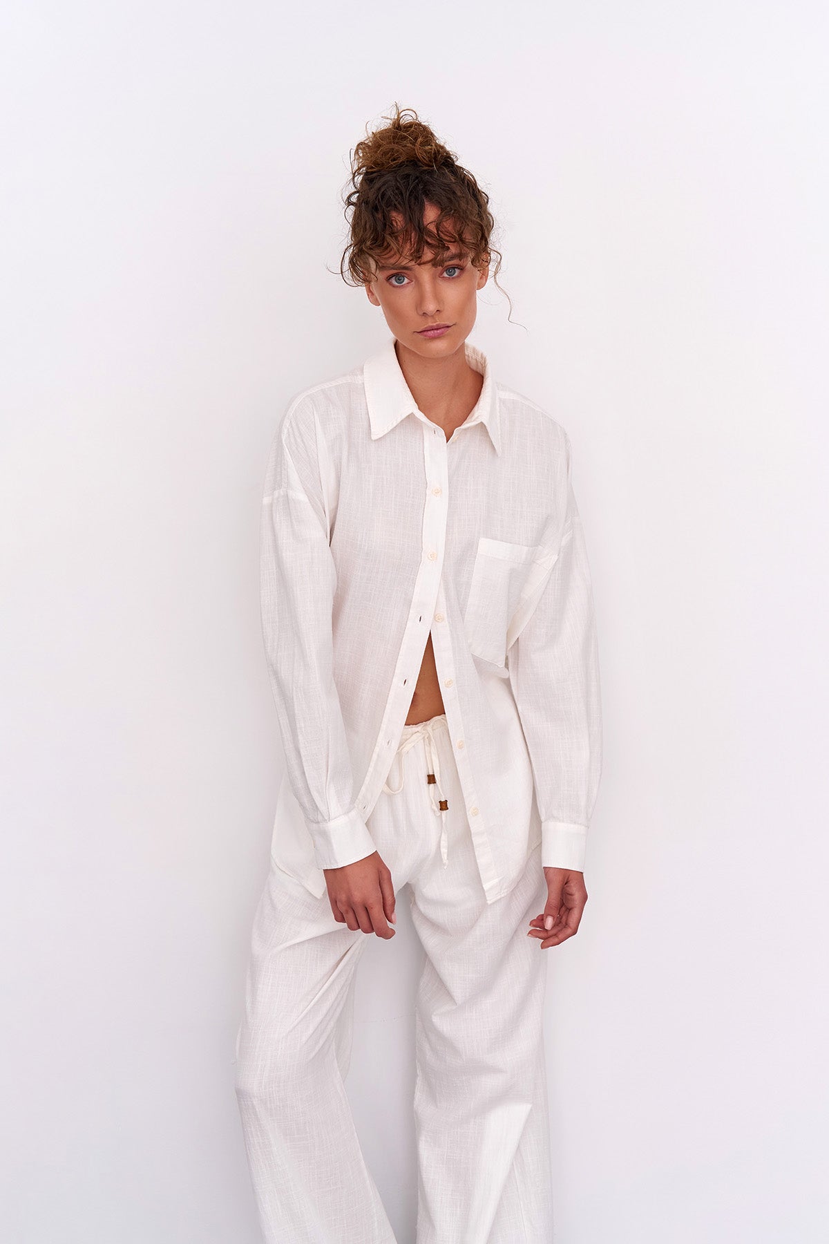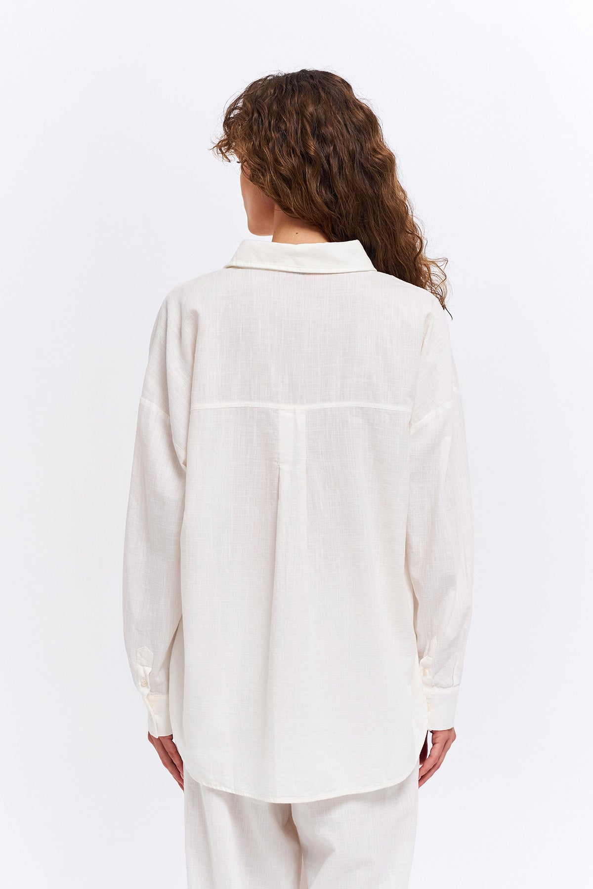 Keten karışımlı, uzun kol,düğmeli, basic gömlek.