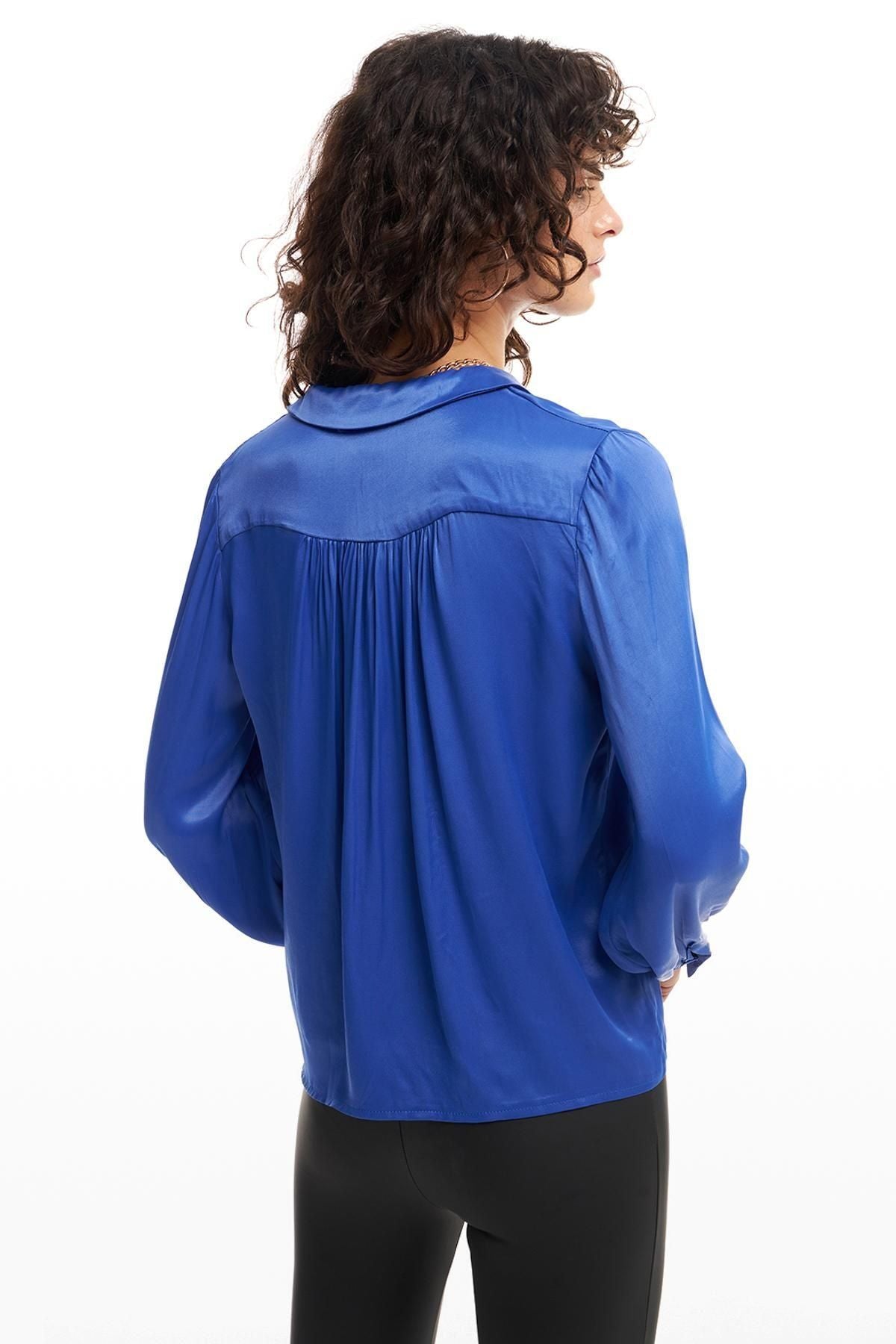 Saten Gömlek Koyu Mavi