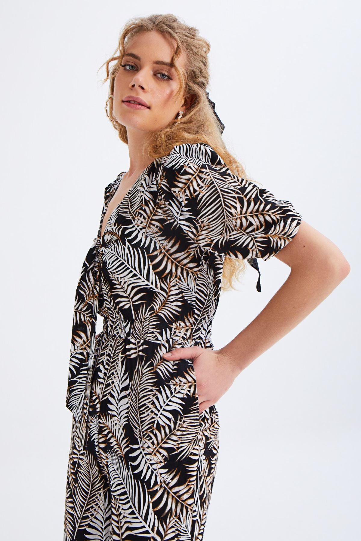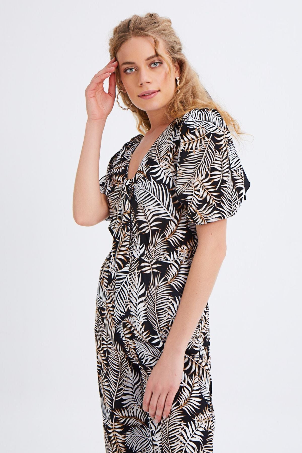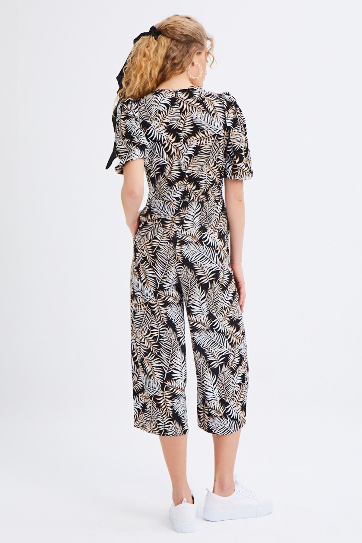 Yakası Bağlamalı V Yaka Tulum Siyah