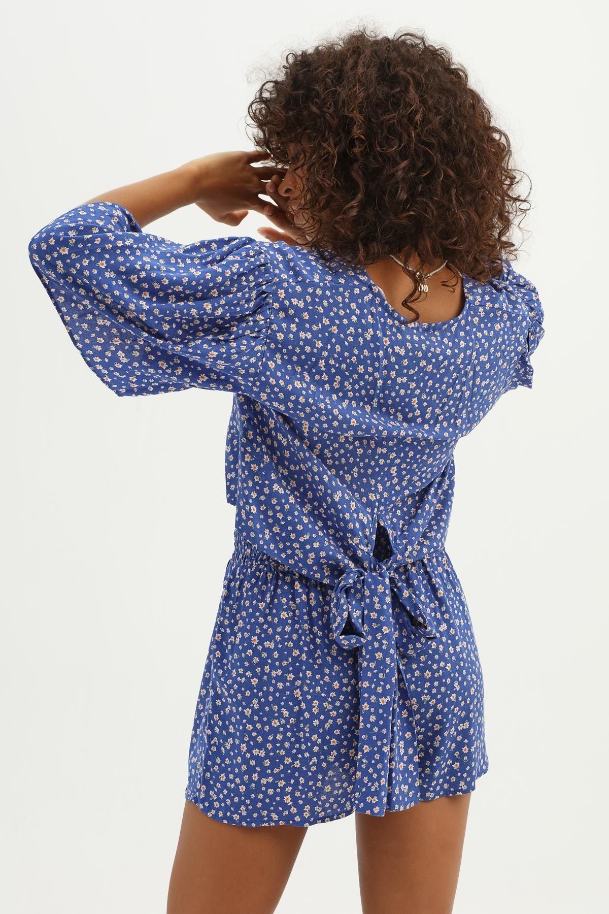 Çiçek Desenli Arkası Bağlamalı Bluz Sax