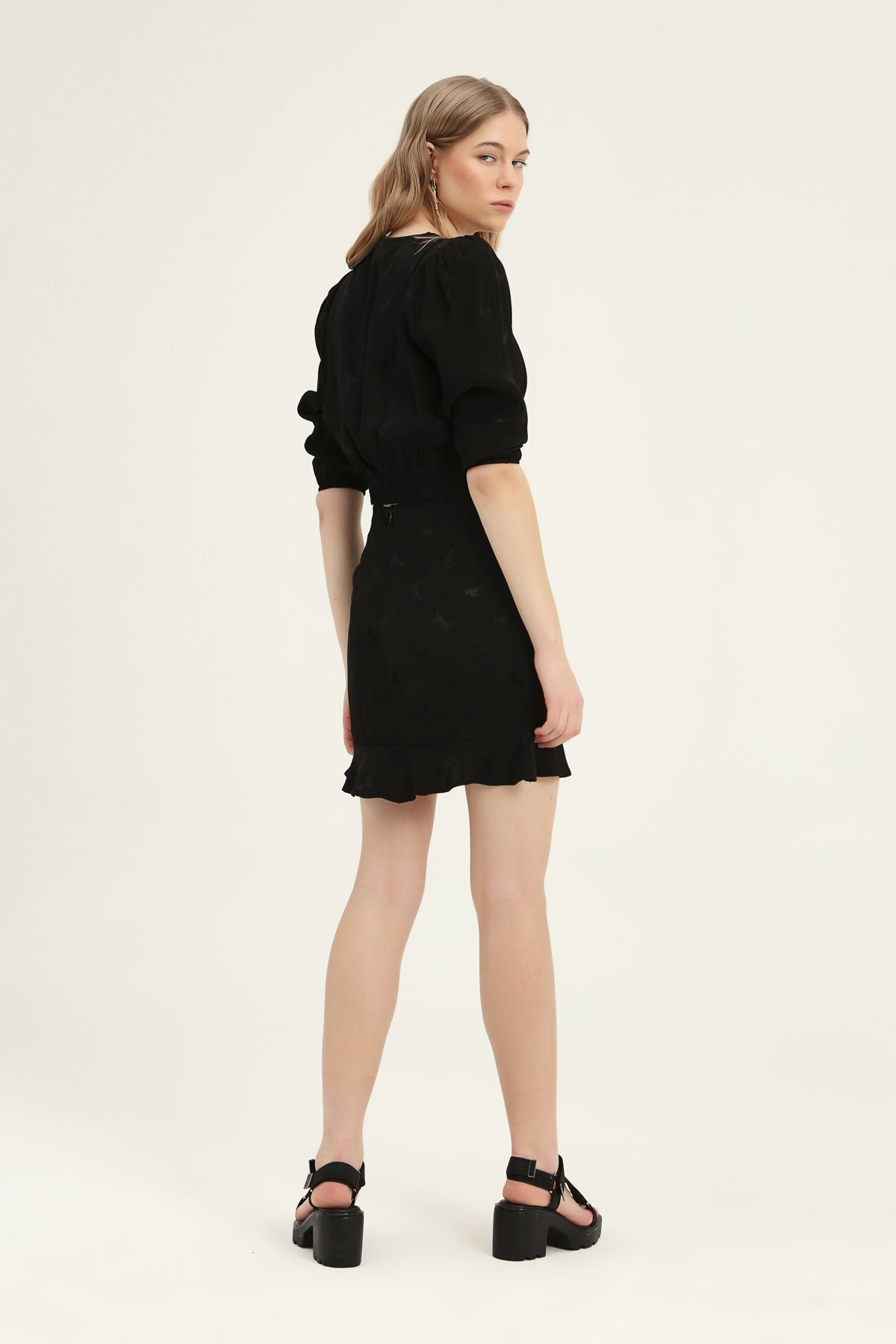 Viskon içerikli ve romantik desenli vatkalı bluz modelinin büyüsüne kapılmak üzeresin! Yumuşacık dokusu, narin deseni ve V yaka detayı ile harikalar yaratacağın bluzu şık davetlerde, özel buluşmalarda ya da ofiste rahatlıkla kullanabilirsin. Seni gündüzden geceye taşıyacak her detaya sahip, iddalı ve seksi vatkalı bluz modelini yüksek bel jean’lerin veya deri eteklerinle kombinleyerek harikalar yaratabilirsin.