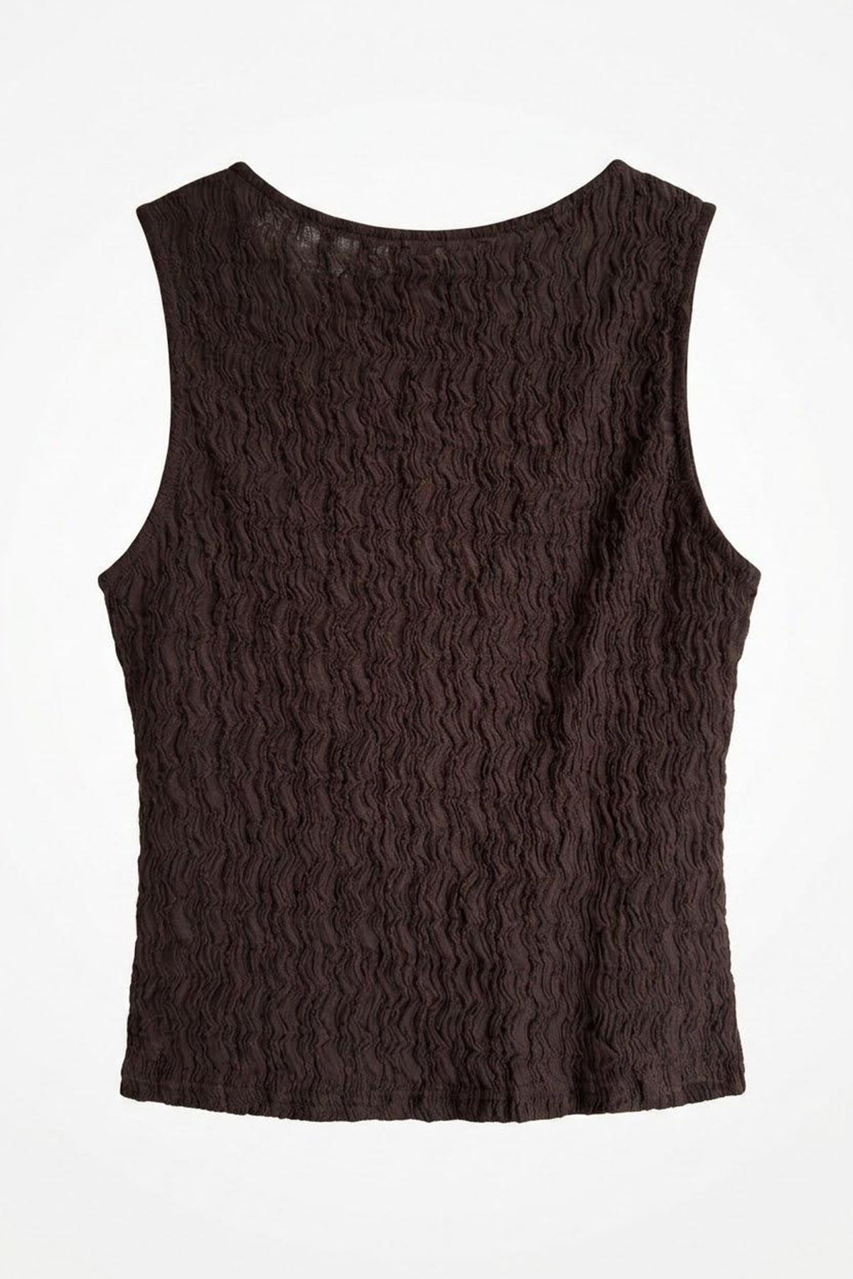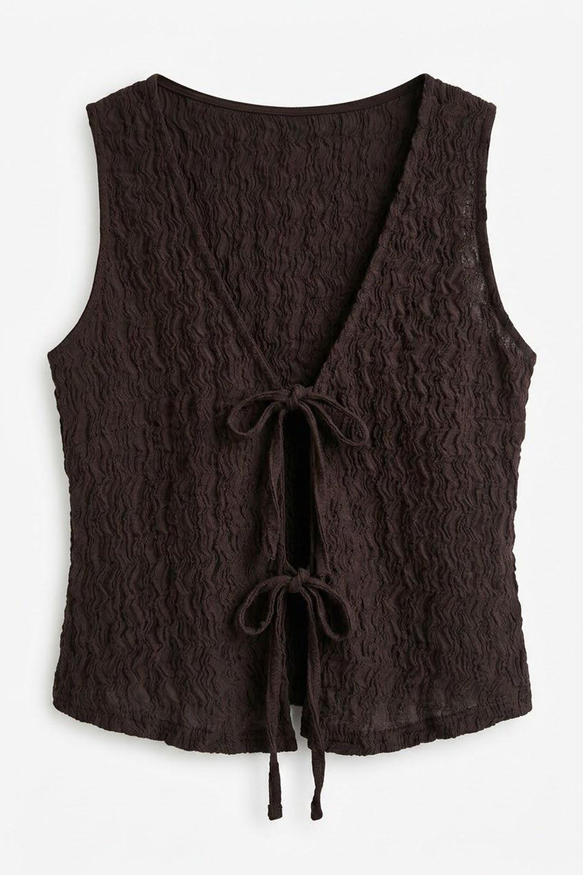 Önü Bağlamalı V Yaka Dokulu Bluz Kahverengi