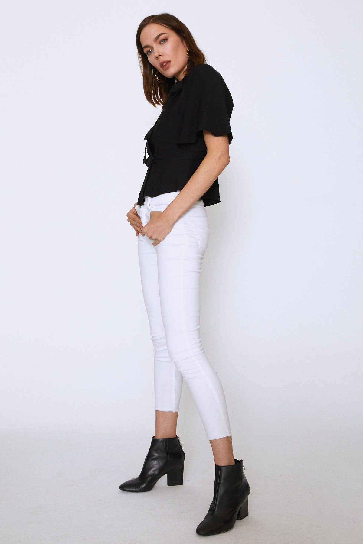 Bağlamalı yakası ile elegant bir görünüm kazandırılan bluz, özellikle iş stilin için ideal bir seçim. Cigarette pantolonlarla ve skinny jeanlerle tamamlayabilirsin.