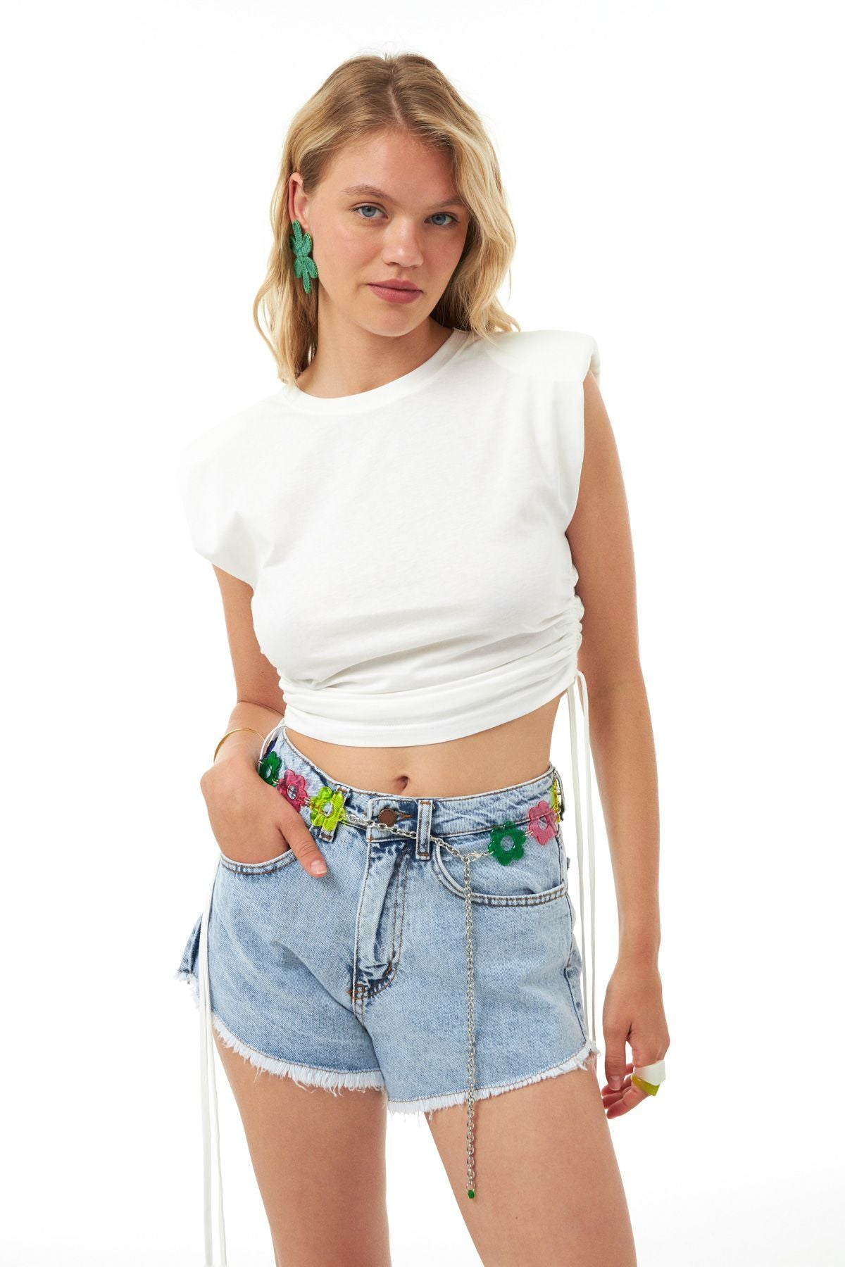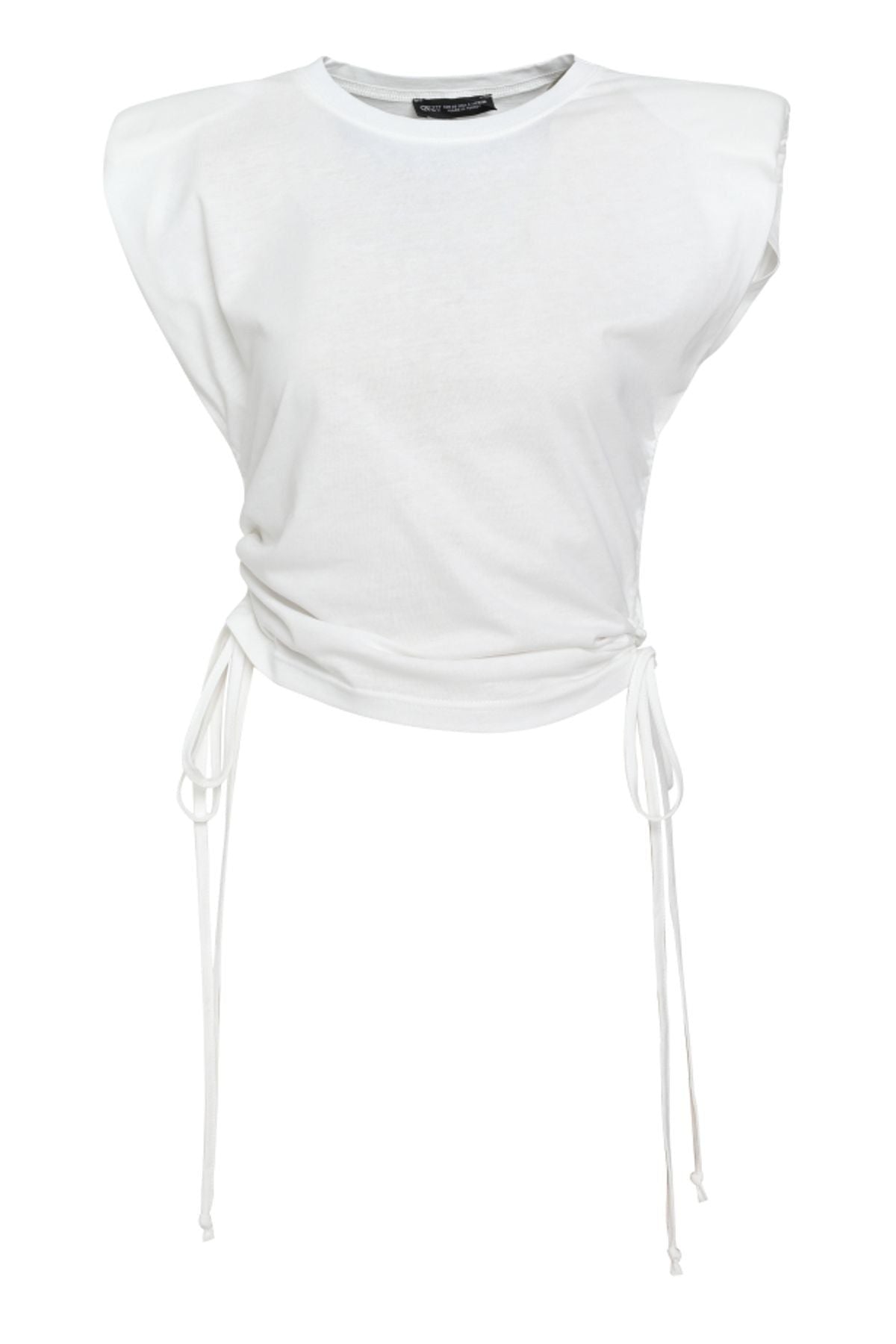 Vatkalı Büzgülü Tişört Ekru