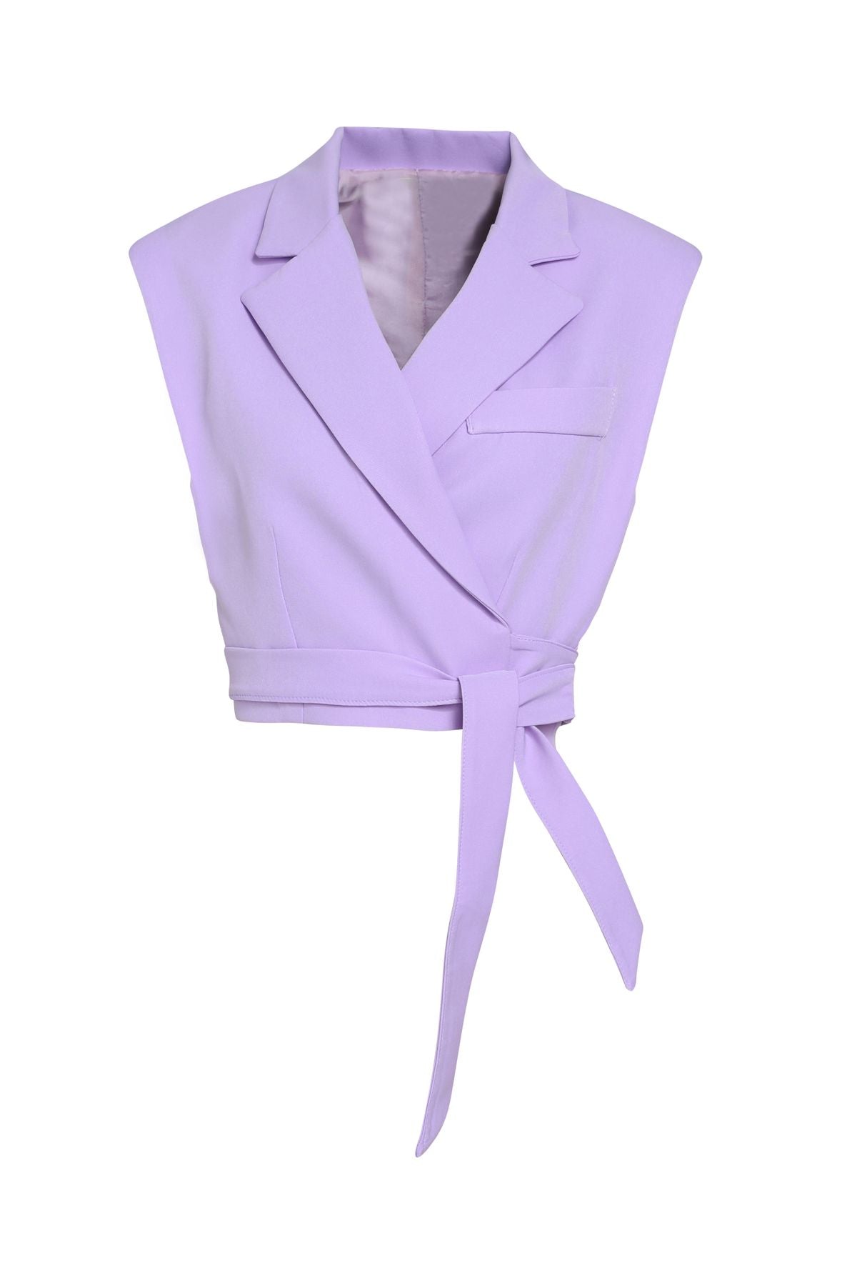 Bağlama Detaylı Crop Yelek Lila