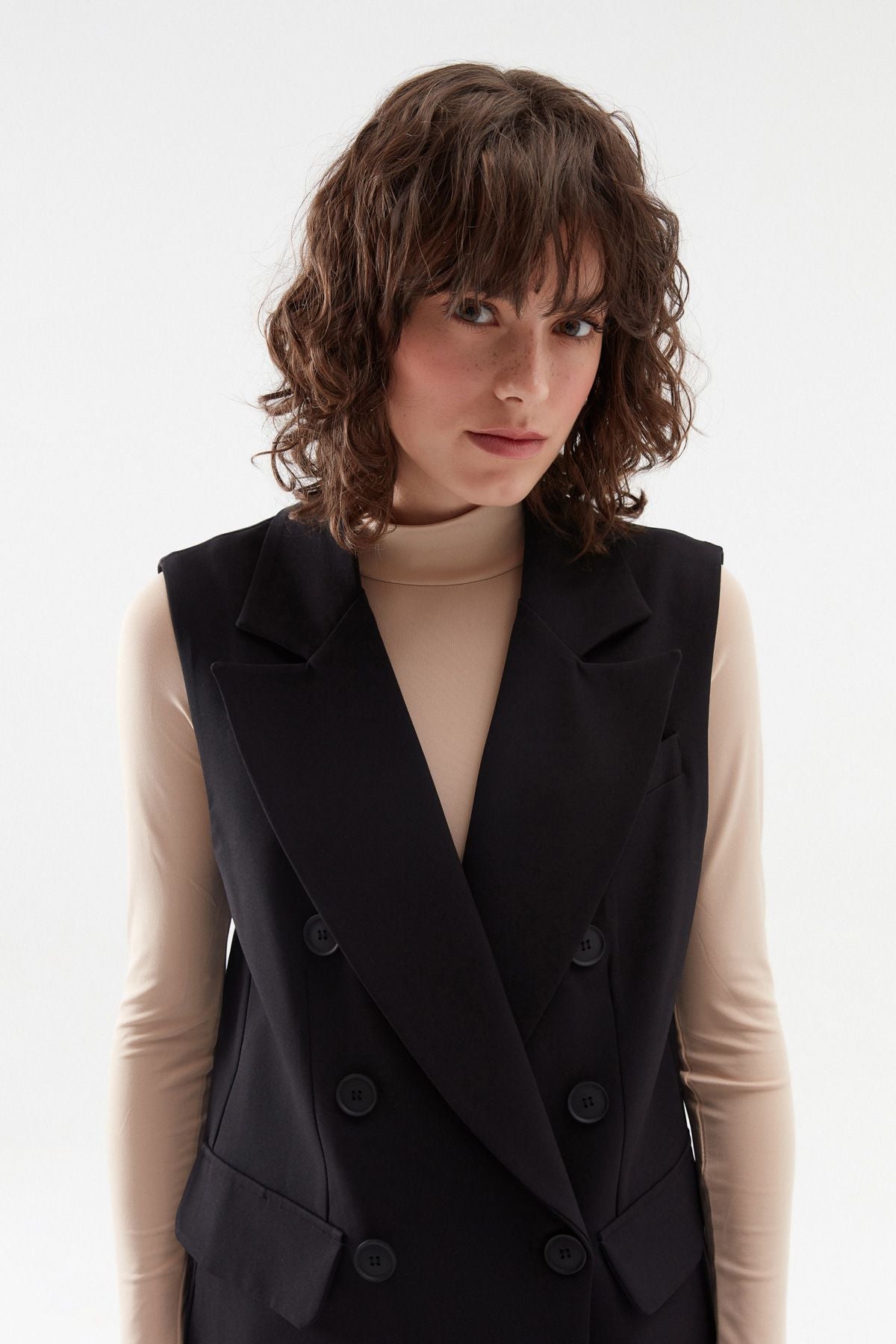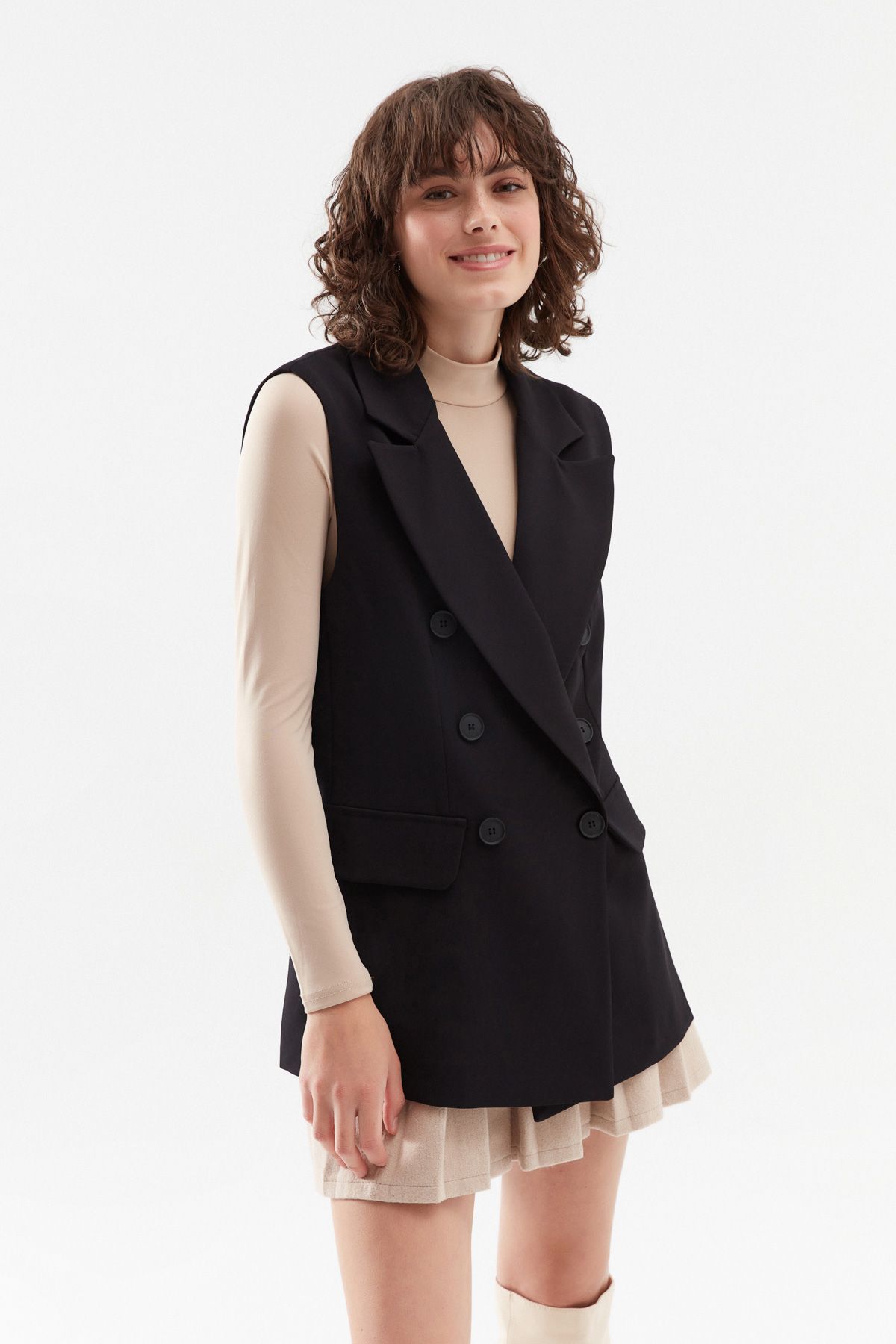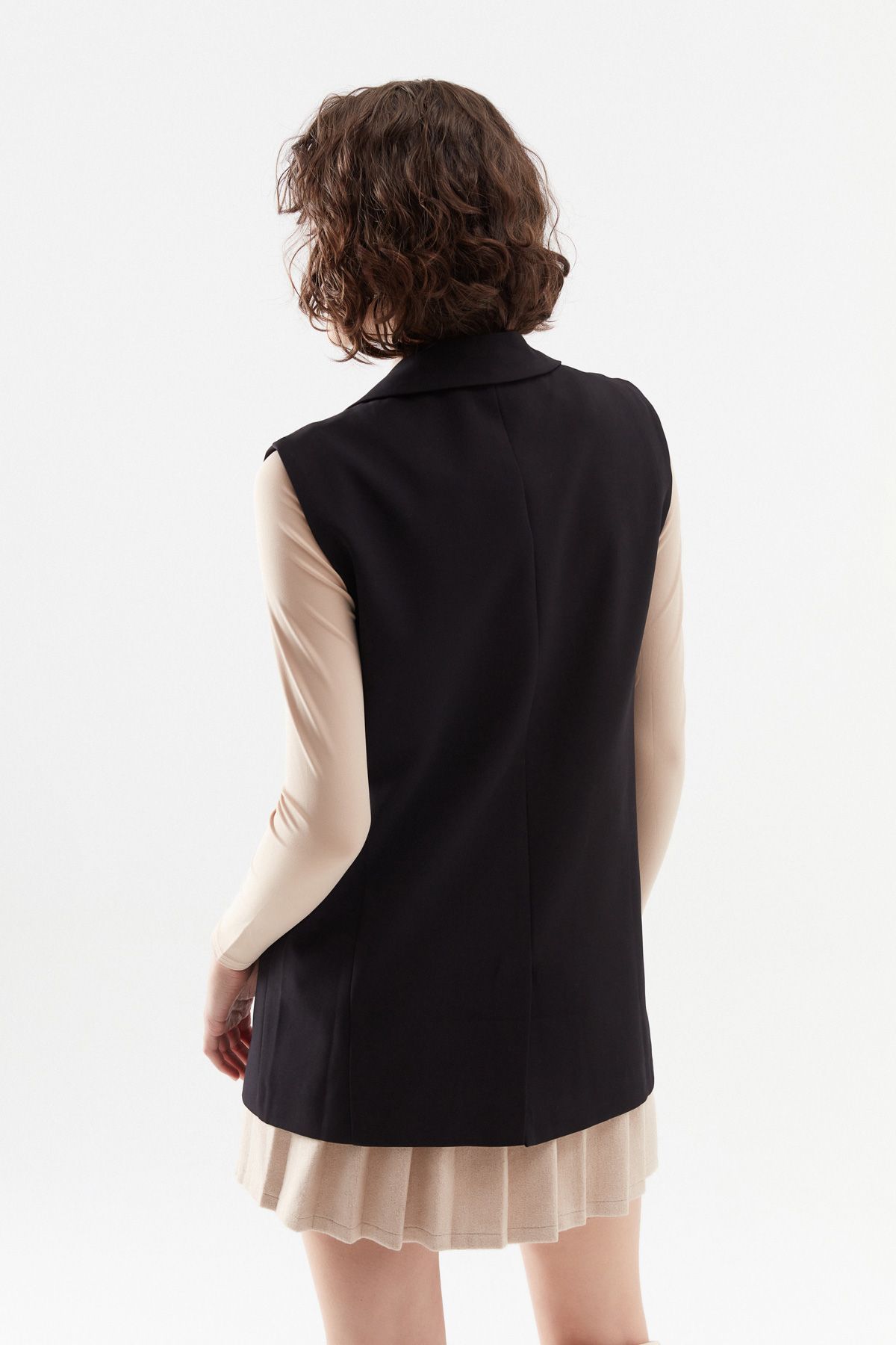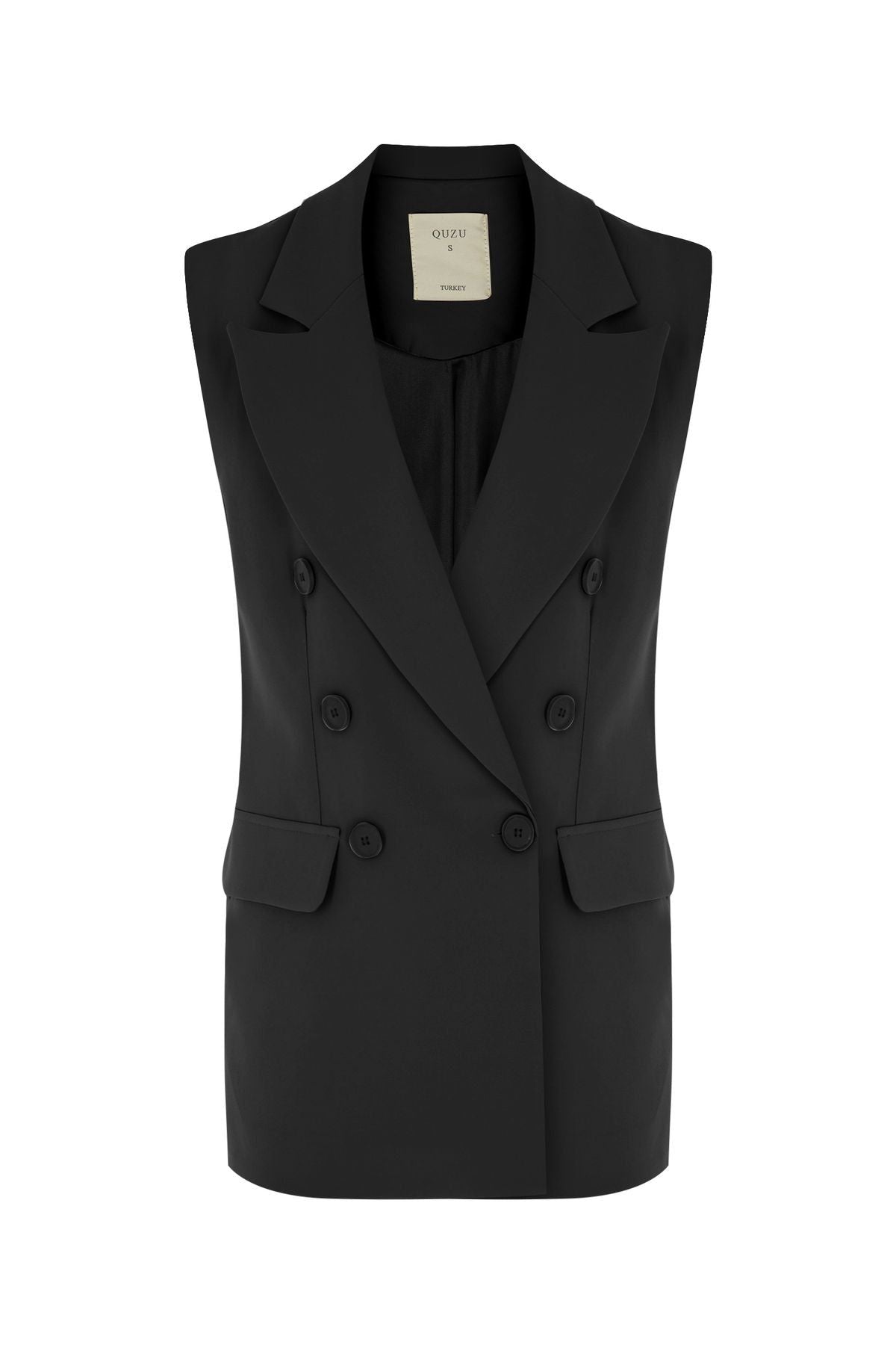 Kruvaze Yelek Ceket Siyah
