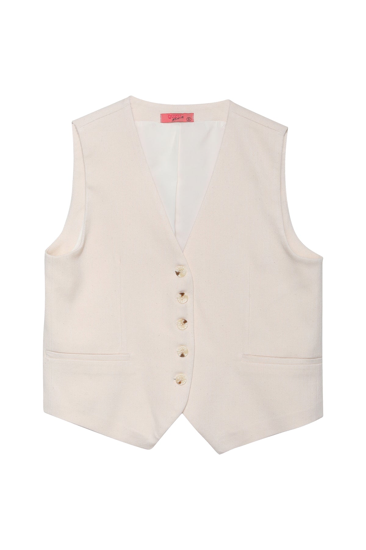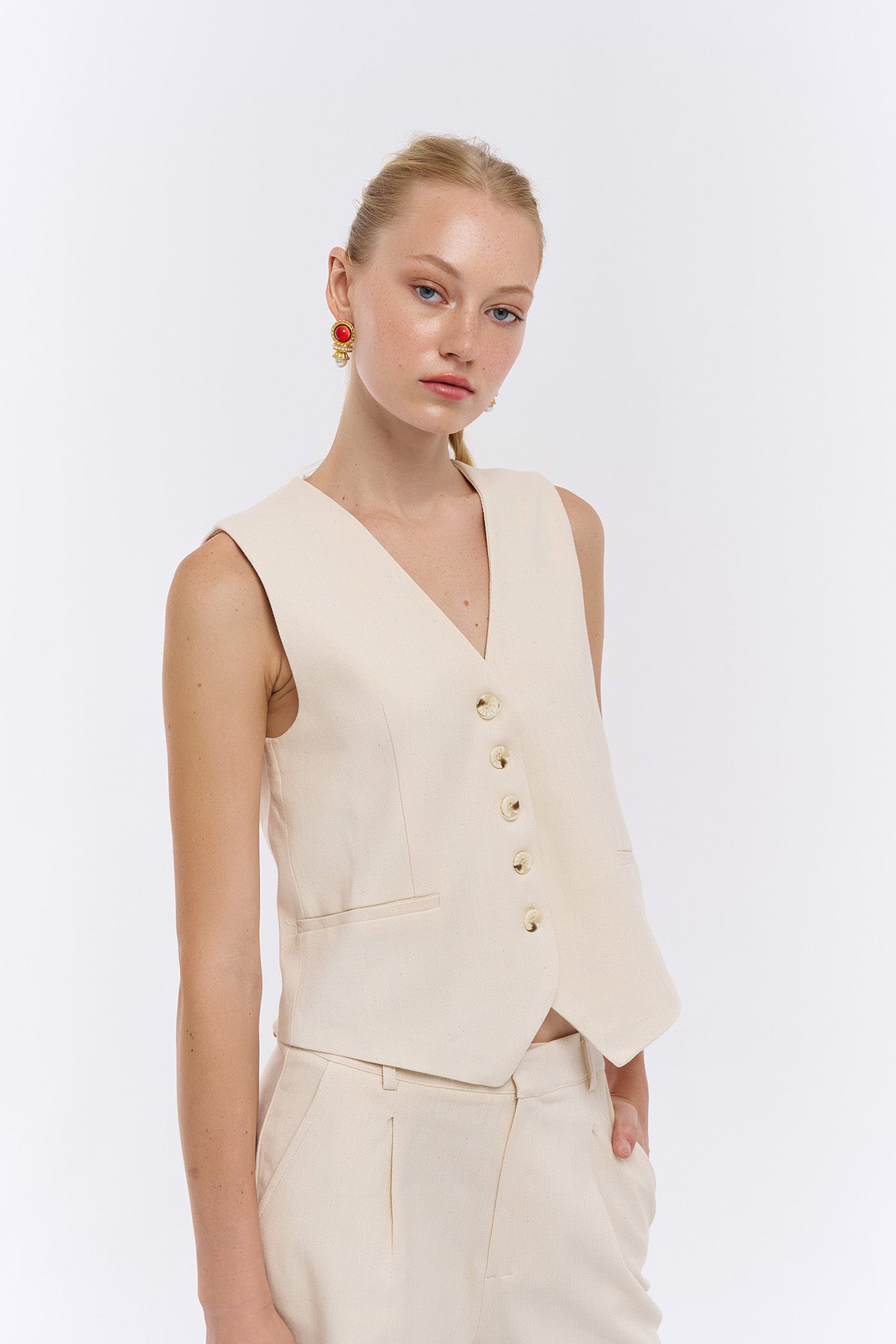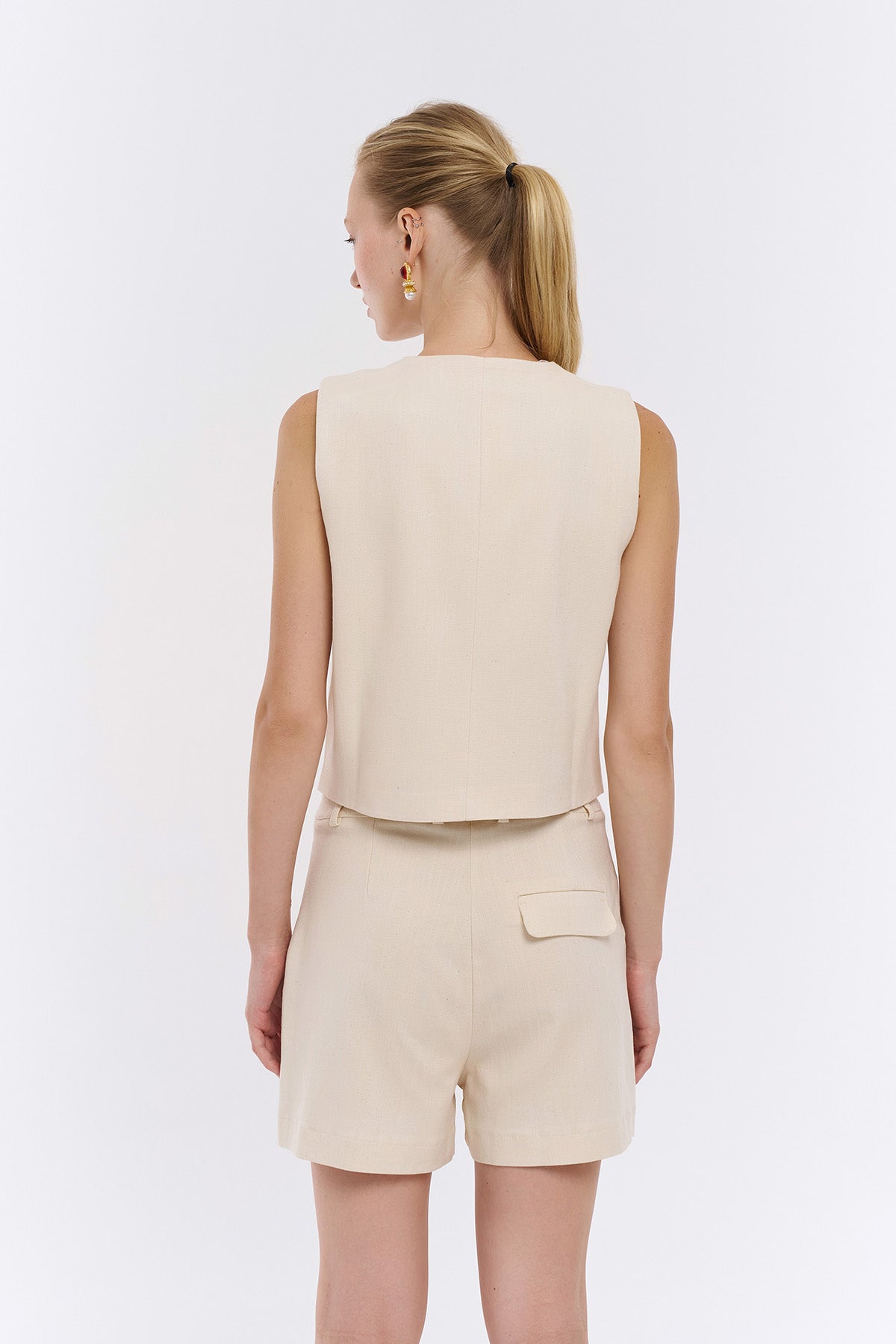 Pens Detaylı Düğmeli Yelek Ceket Naturel
