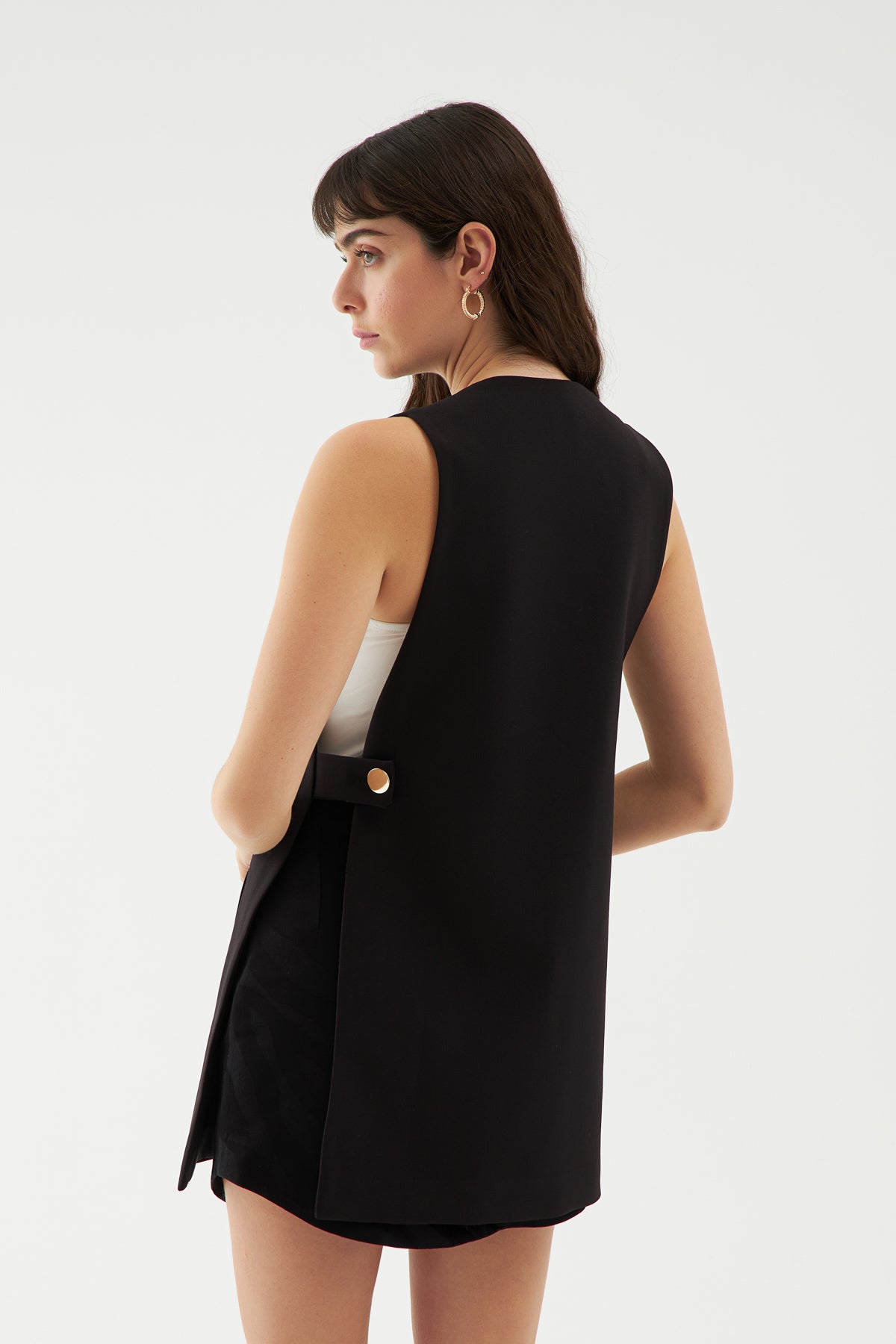 Yanları Açık Düğmeli Yelek Ceket Siyah