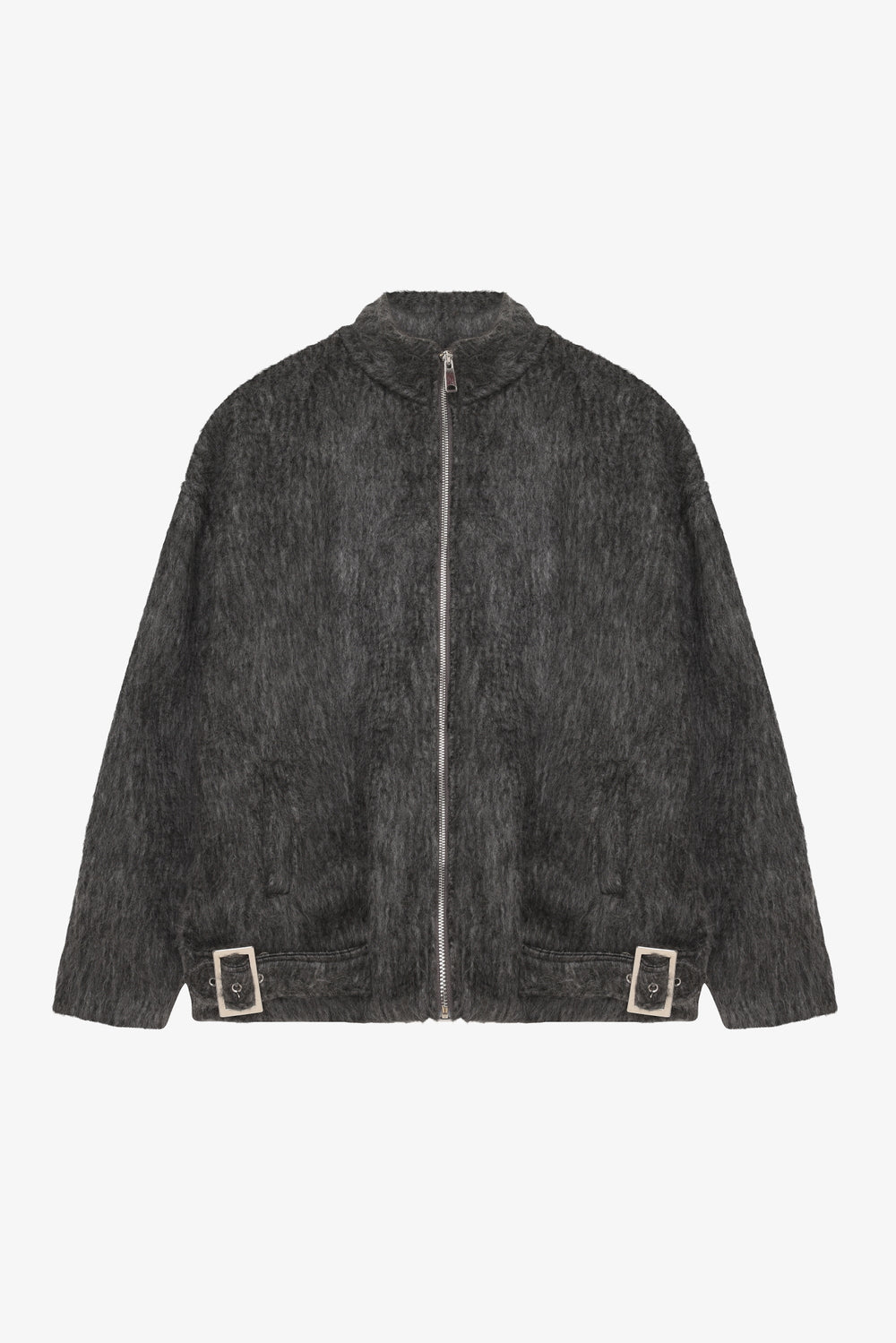 Tüylü Tokalı Oversize Bomber Ceket Antrasit