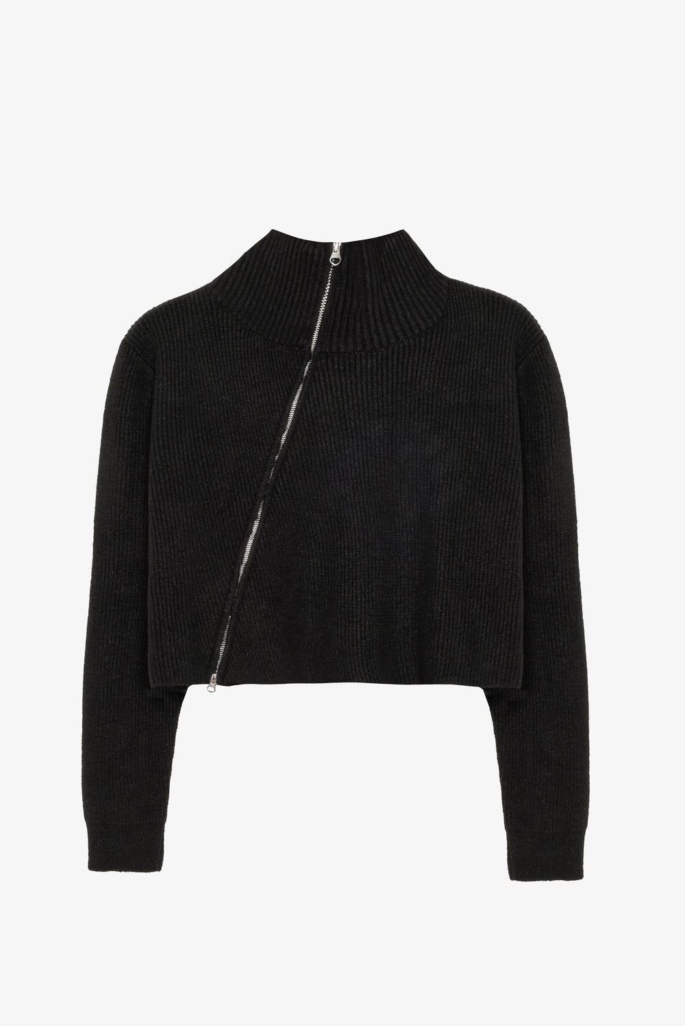 Asimetrik Fermuarlı Triko Kazak Siyah