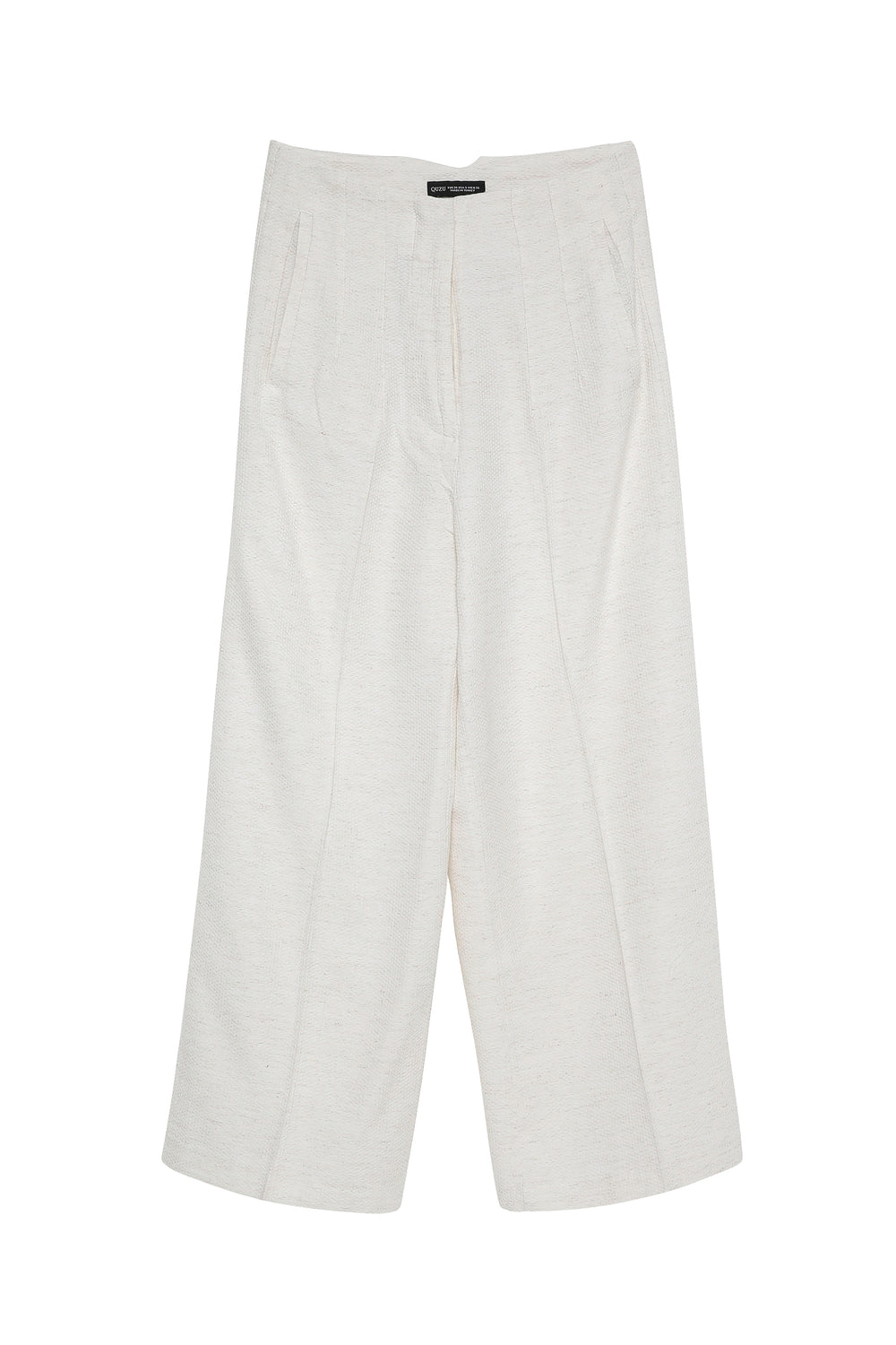 Keten karışımlı, yüksek bel, pens detaylı, önden gizli kapama düğmeli, bol paça, kısa pantolon