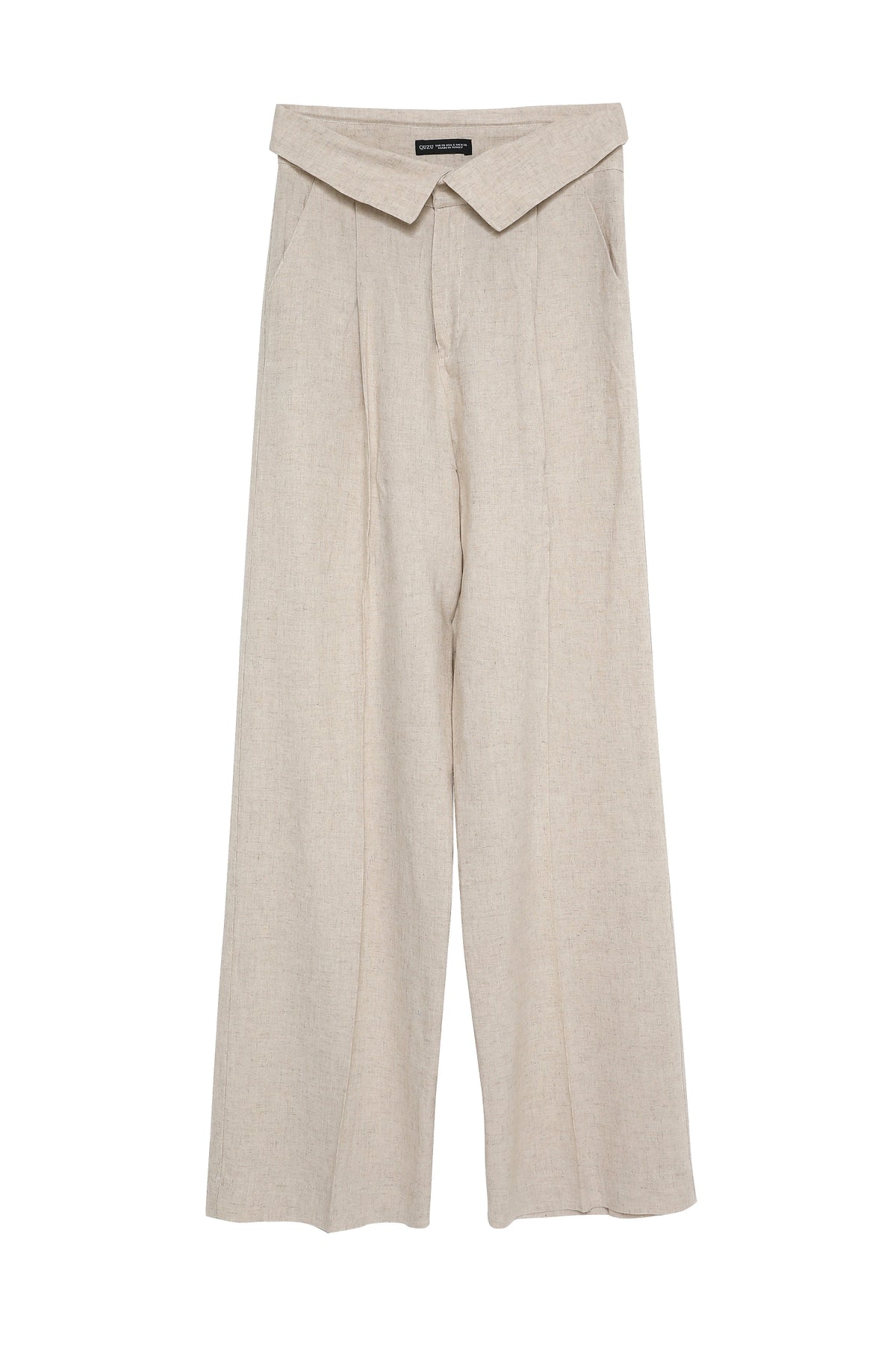 Linen blend, concealed fastening button, wide leg, high waist, waist detail, double pockets, trousers.