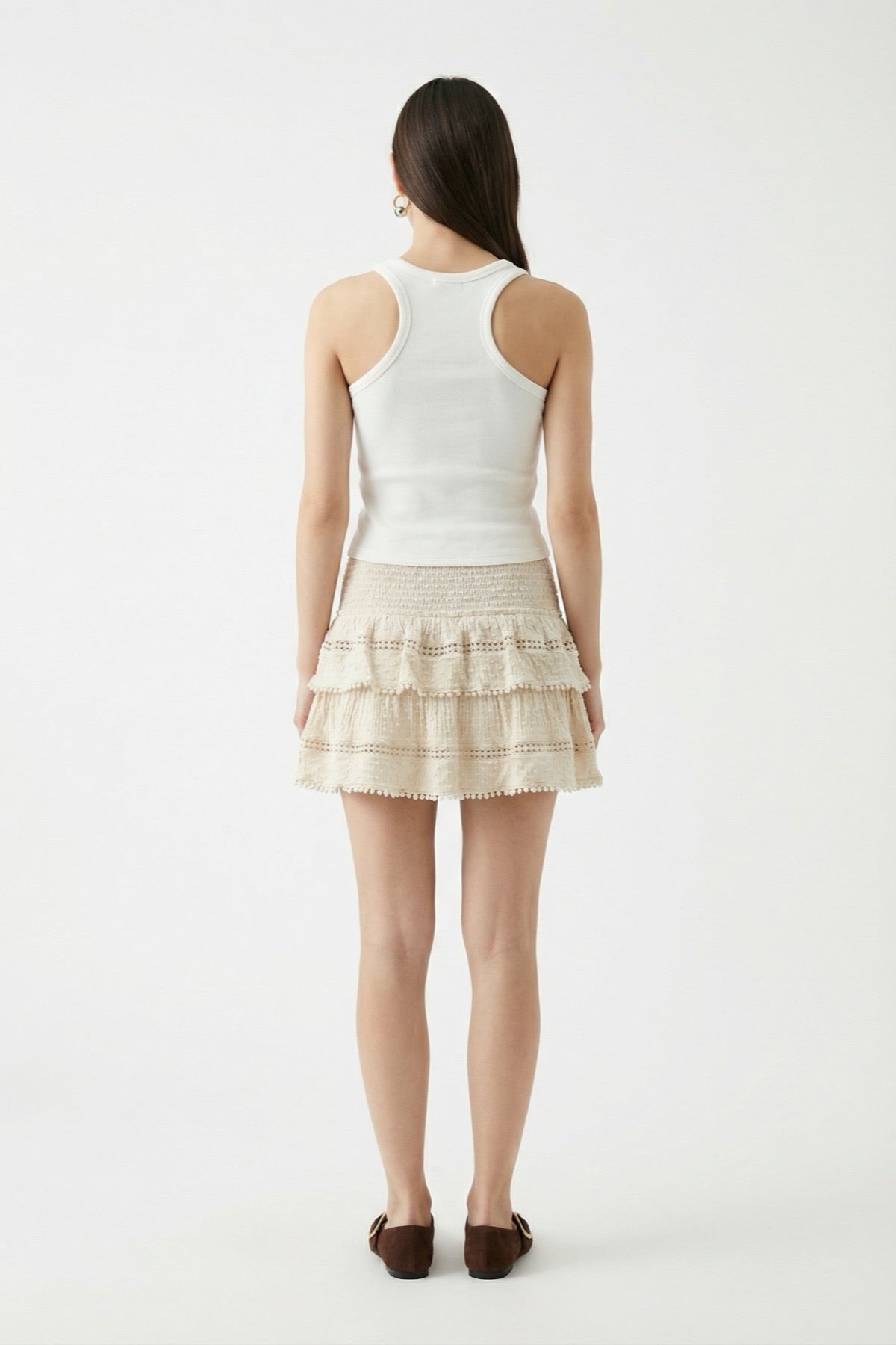 Fitilli Yuvarlak Yaka Basic Atlet Ekru