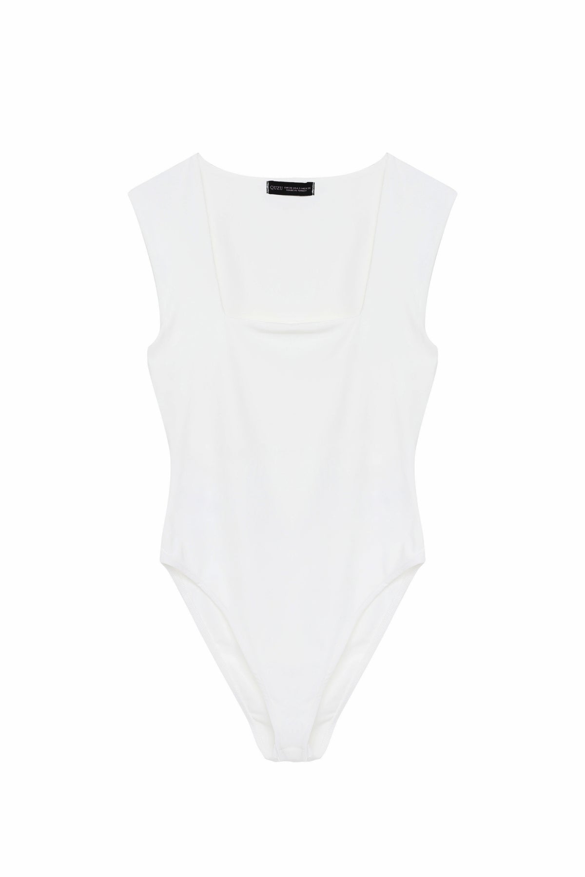 Square Neck Thick Straps Bodysuit Ecru