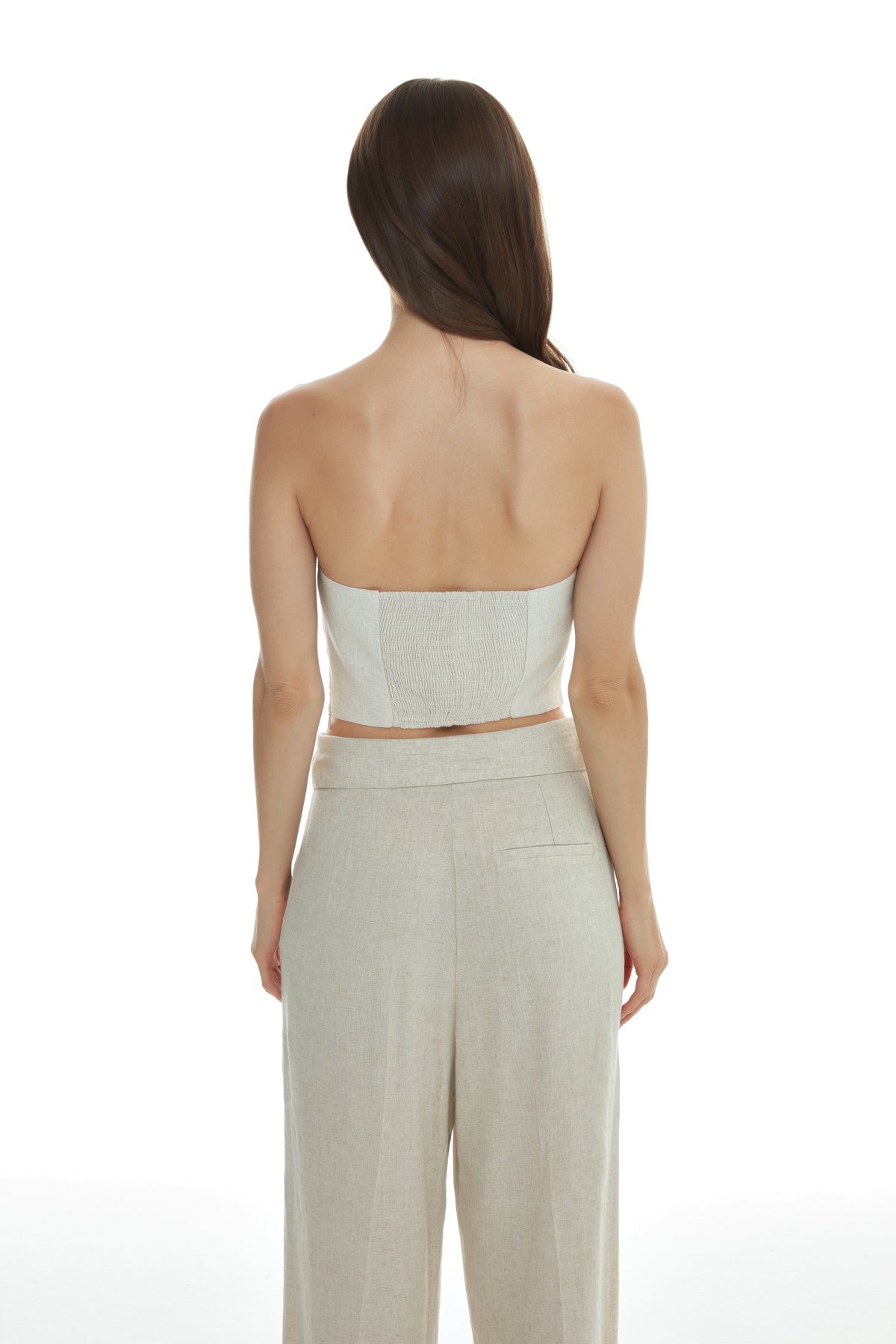 Bustier blouse in a linen blend with concealed side zip fastening and elastication at the back.