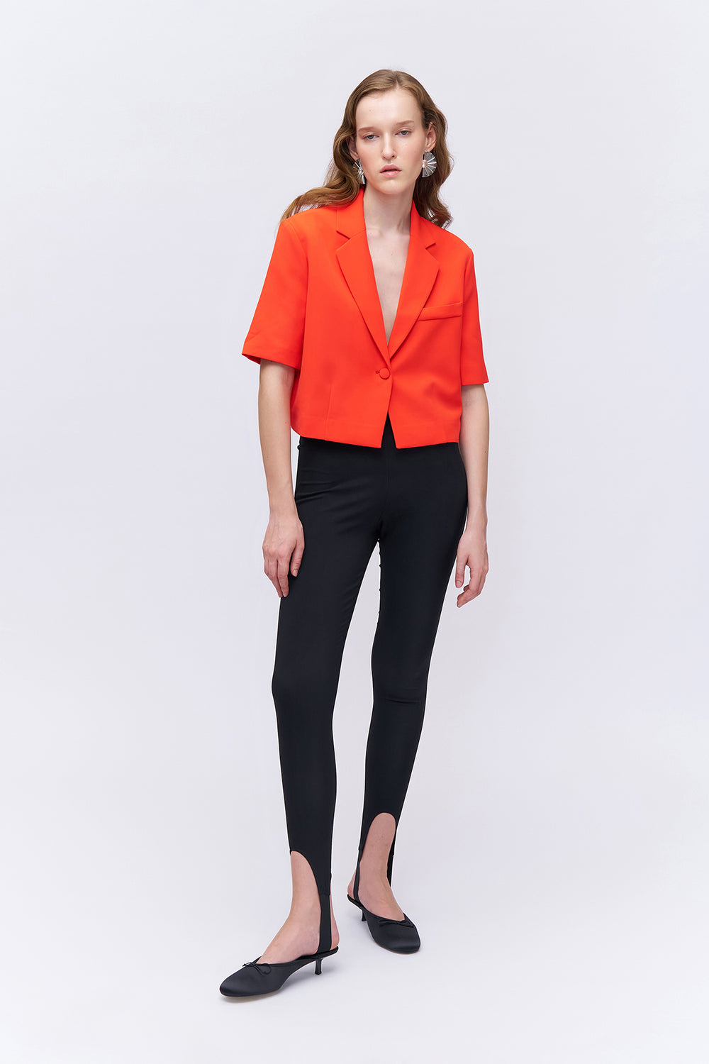 Short Sleeve Crop Blazer Jacket Orange