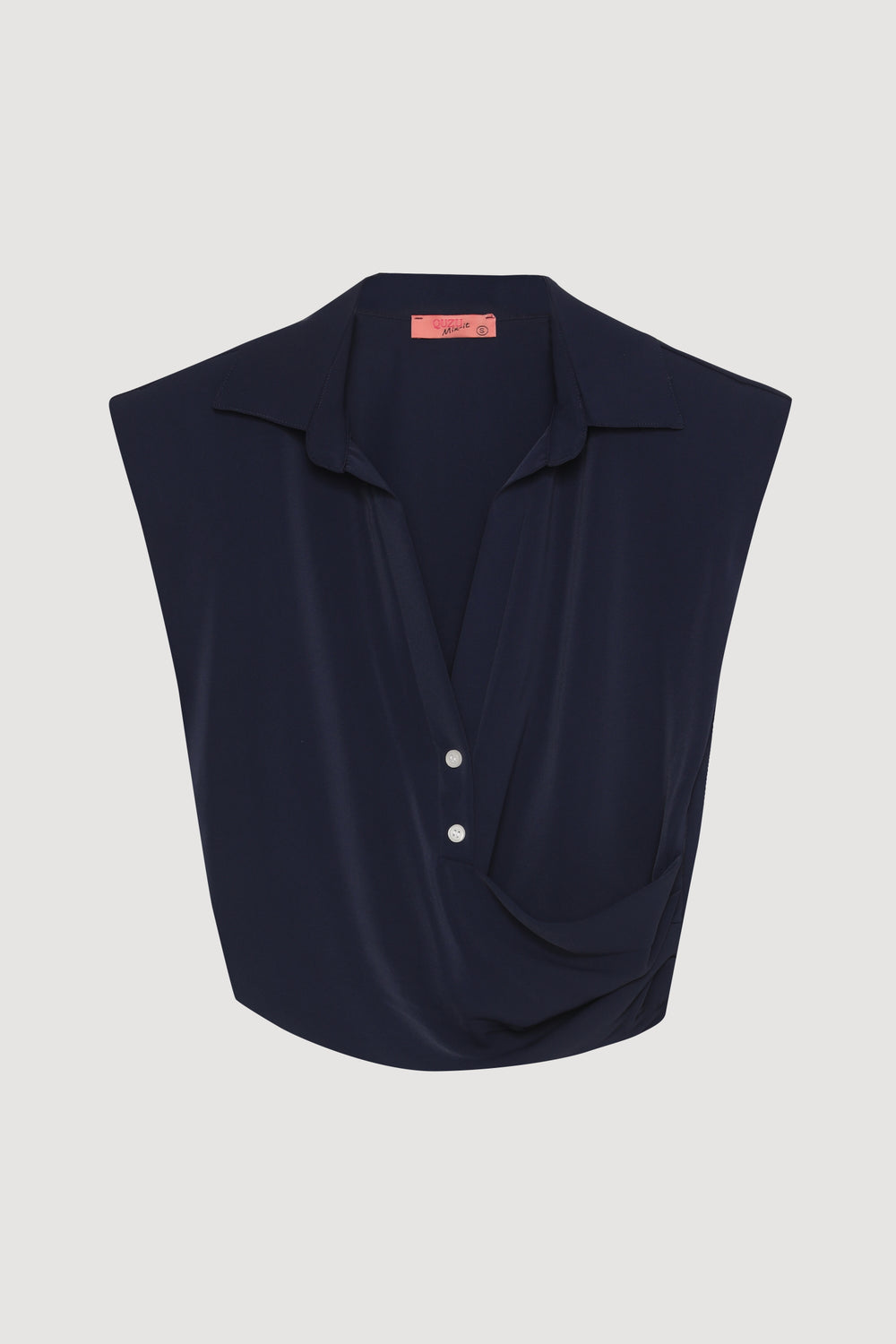Kruvaze Detaylı Düğmeli Kolsuz Bluz Lacivert