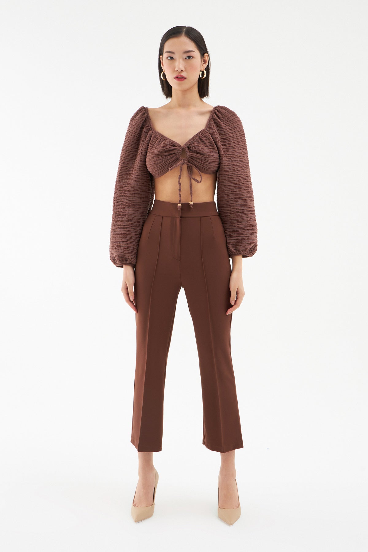 If you want to add a difference to your daily combinations, you can choose the blouse model with lacing and low-cut detail in the front, which has a different look with its texture and design among the blouse pieces in your wardrobe. You can create a different style with the balloon sleeve blouse model that helps to show your shoulders wider in your combinations. In addition to its soft texture, the low-cut balloon sleeve blouse model, which draws attention with its pool neck cut and low-cut detail, has a gipped back.