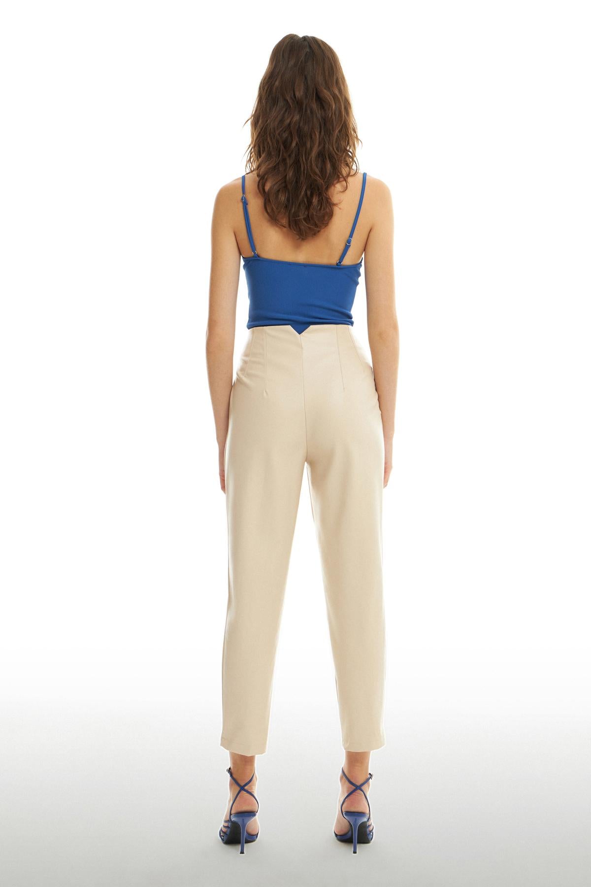 Plier Detailed Leather Trousers Stone
