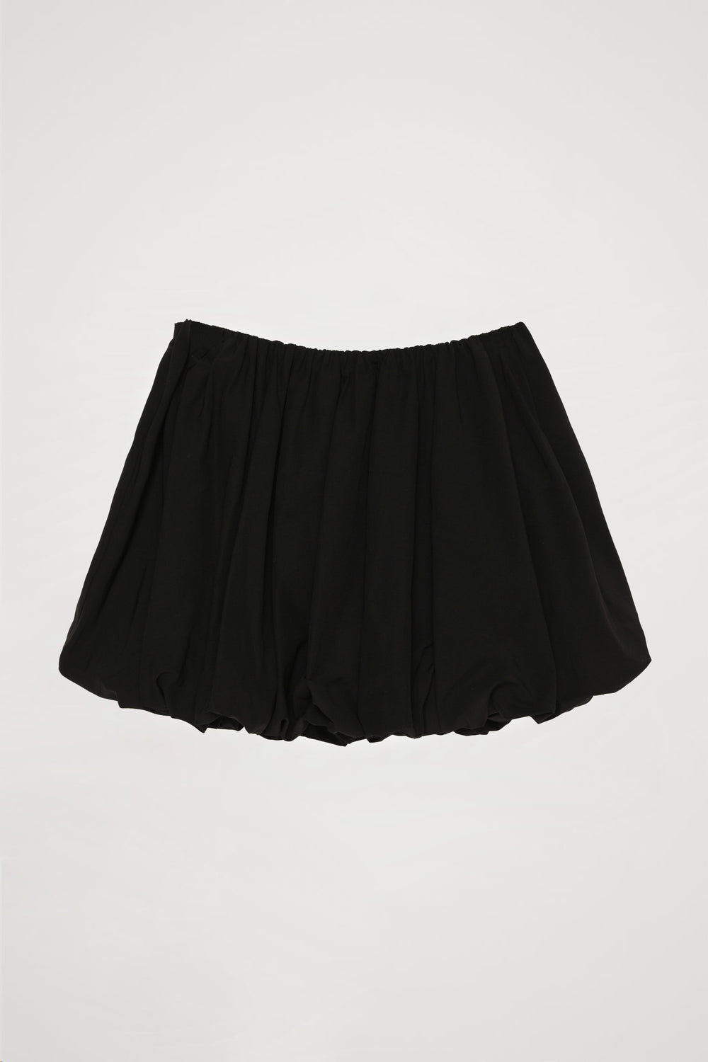 Yüksek bel, lastik bel detaylı, pileli, mini balon etek.