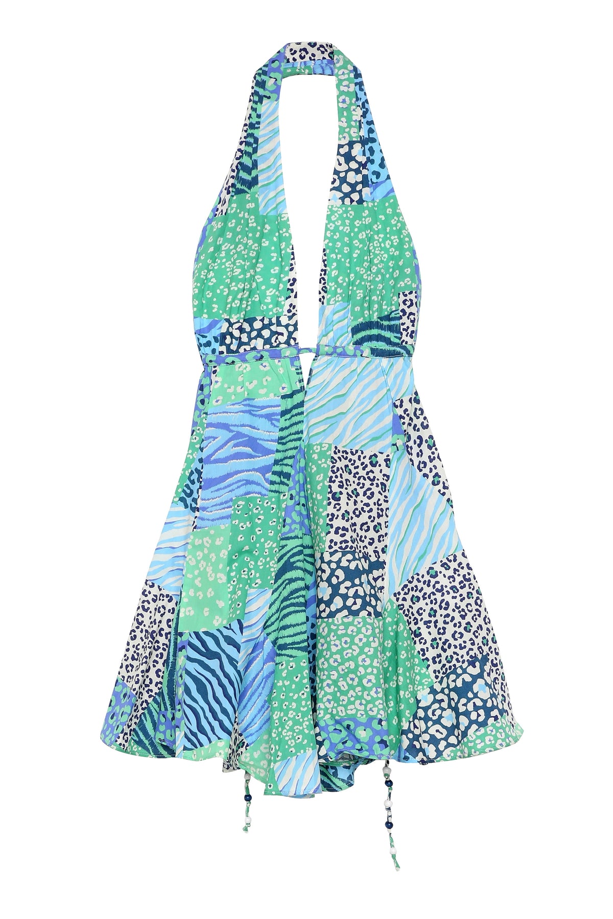 Sırt Dekolteli Desenli Mini Elbise Mint