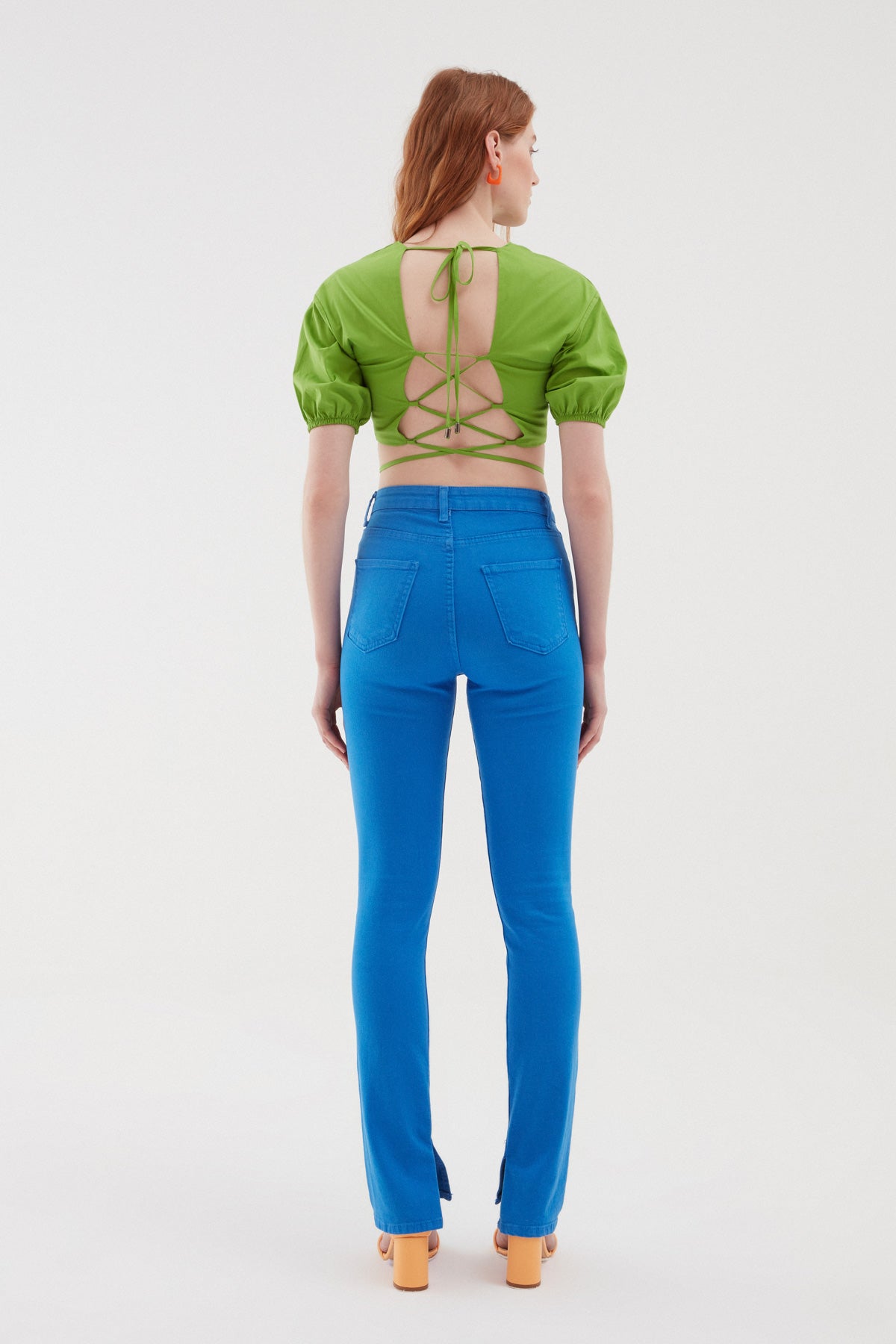 In all seasons and seasons, the joker and savior piece of the closet, the jeans model adds a dose of elegance to its style with its inside leg slit detail. You can emphasize the slit detail more by wearing the slit detailed trousers model with thin heeled shoes, and at the same time, you can look attractive and stylish at invitations. You can reveal the waist height of the high waist trousers model with cropped blouses. Zipper and metallic button. It contains cotton.