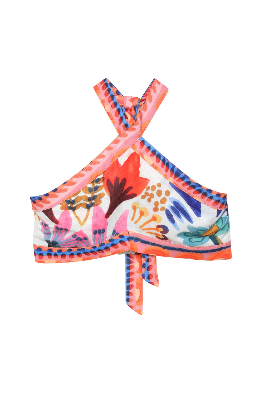 Boyundan Bağlamalı Renkli Keten Büstiyer Bluz Turuncu