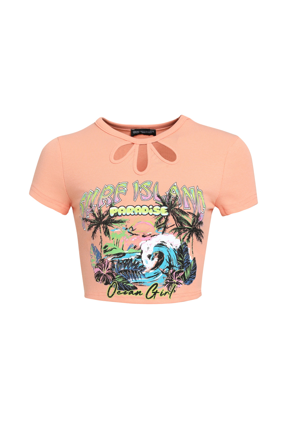 Paradise Printed Crop T-Shirt Light Orange