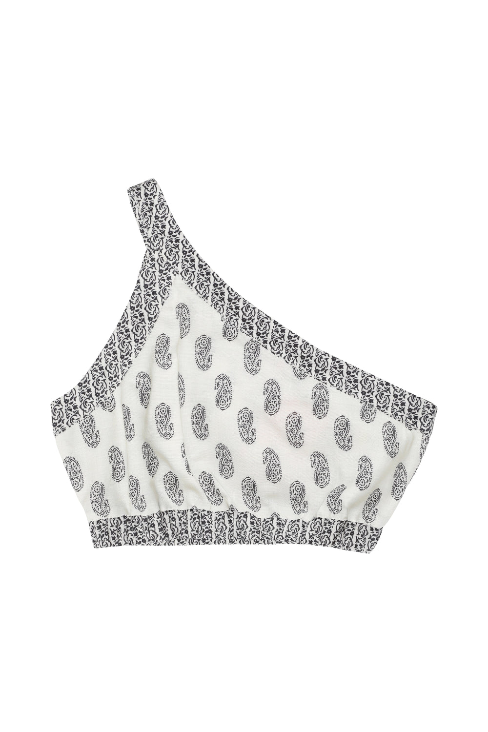 Desenli Tek Omuz Crop Keten Bluz Naturel