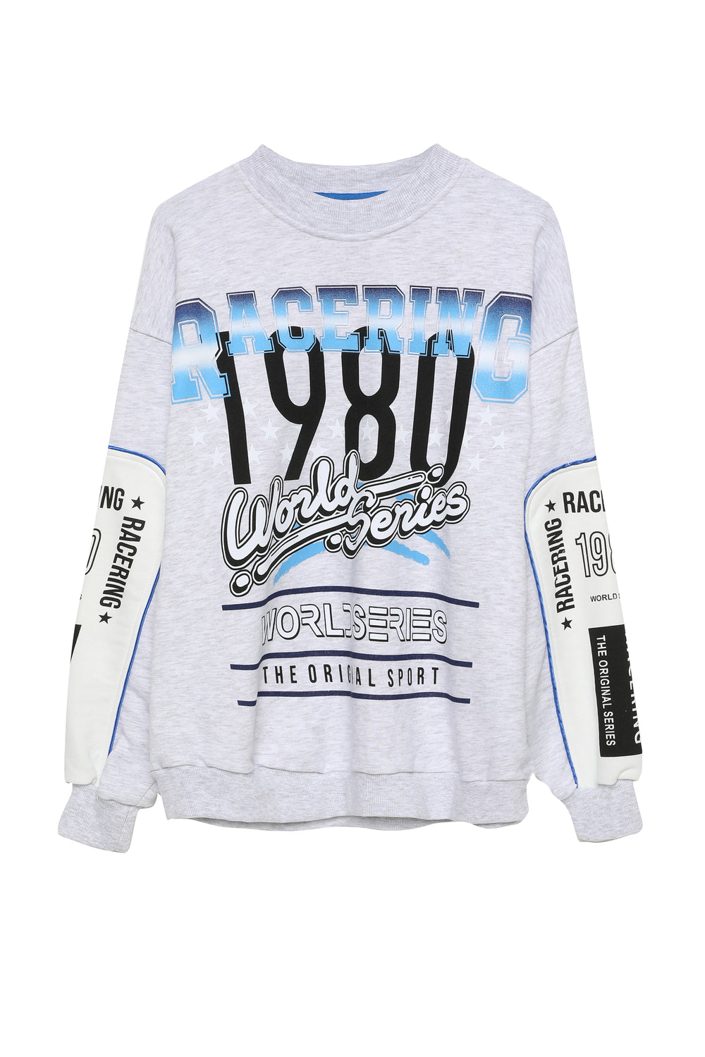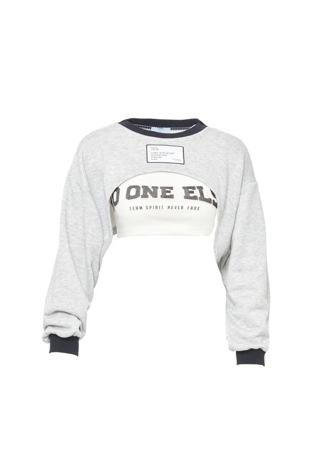 Atlet Detaylı Baskılı Crop Sweatshirt Gri