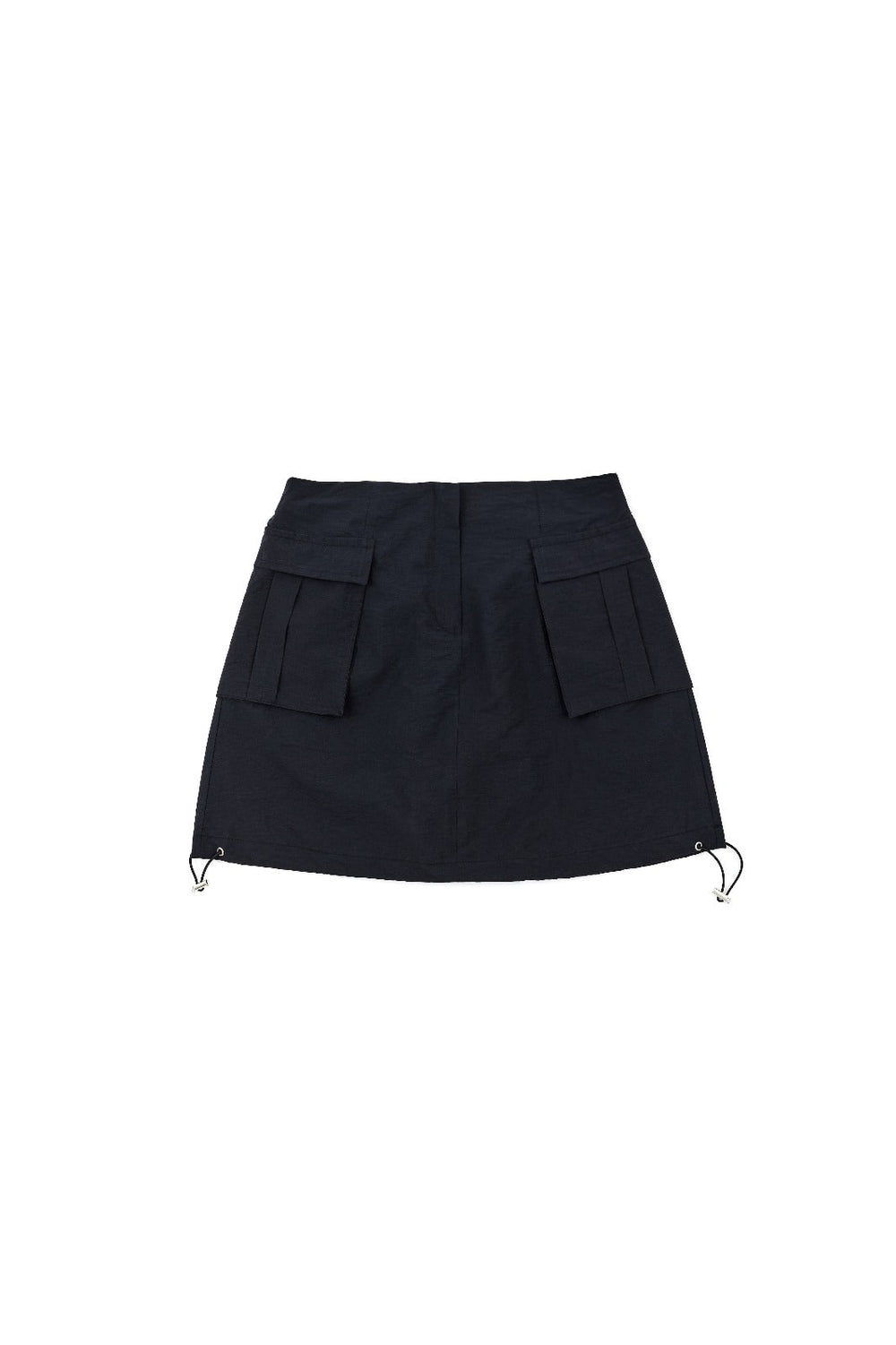 Paraşüt Kumaş Kargo Cepli Mini Etek Siyah