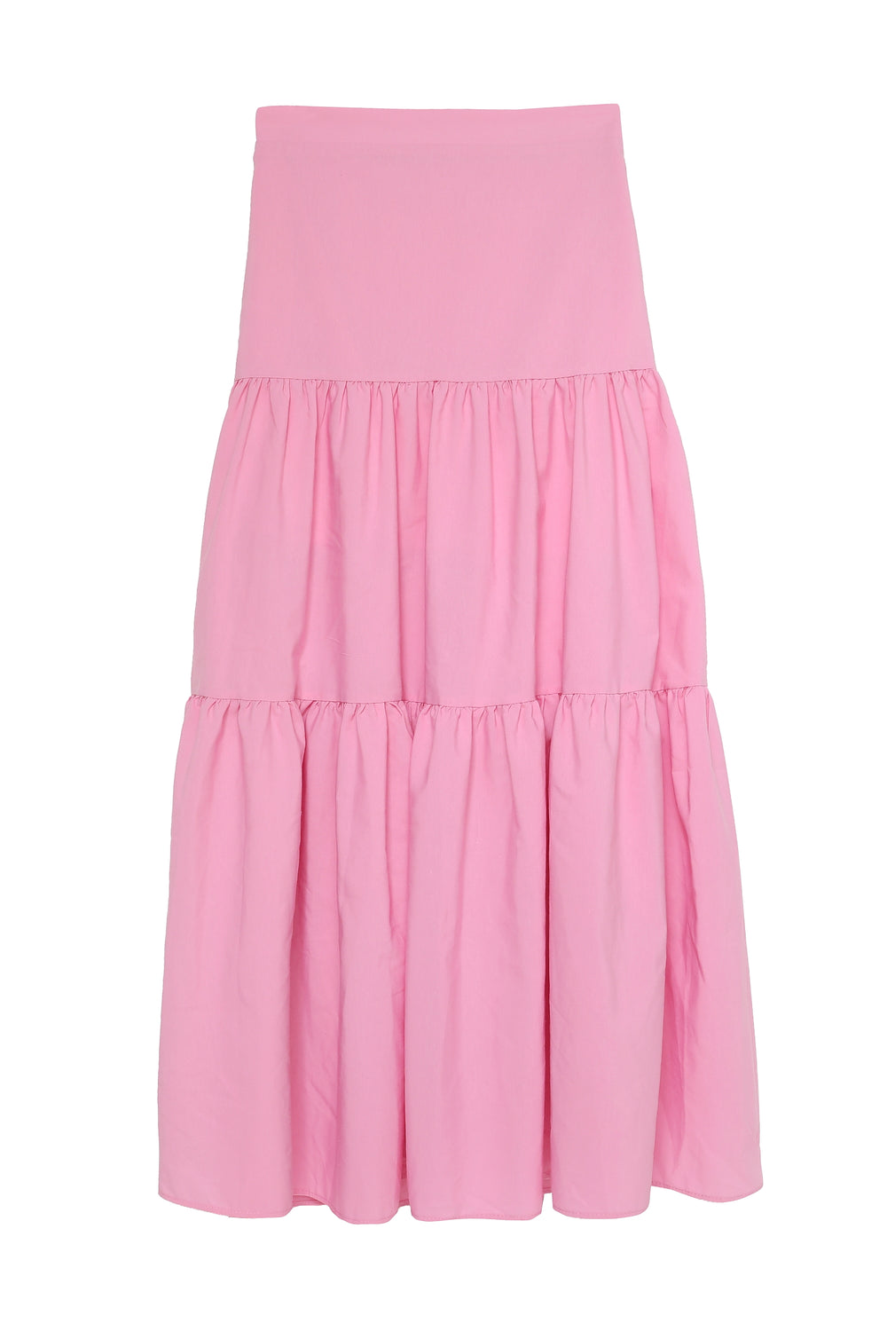 Yırtmaç Detaylı Desenli Midi Boy Etek Pudra