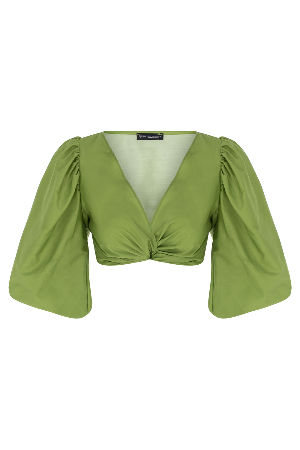 Watermelon Sleeve Knot Detailed Crop Blouse Green