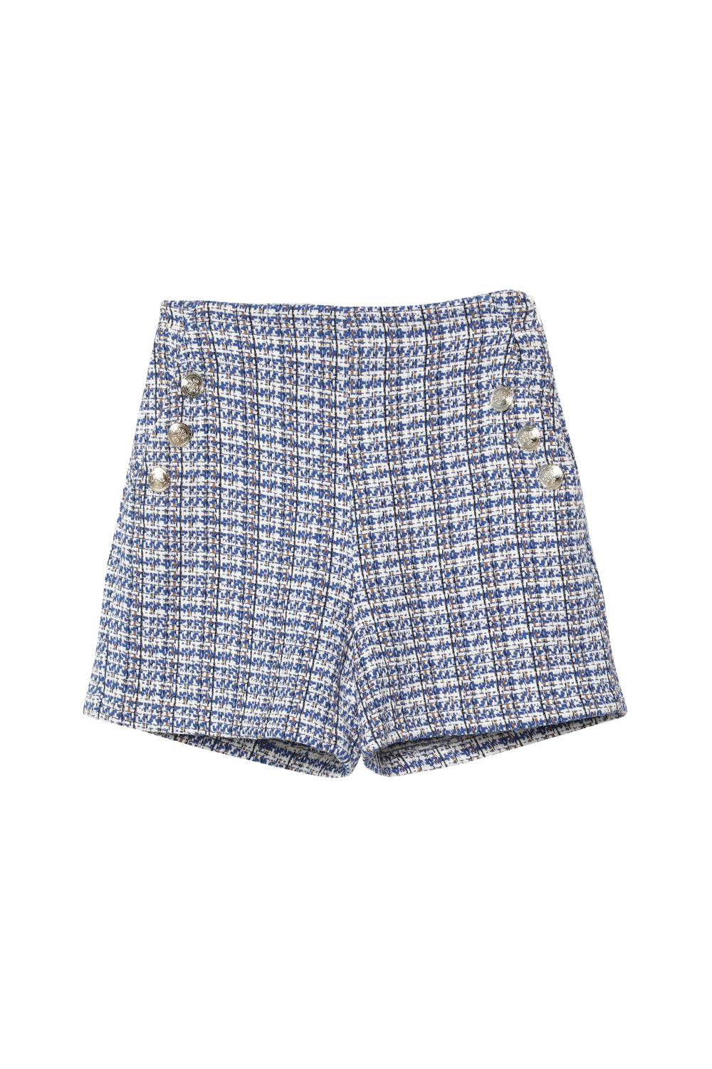 Button Detailed Tweed Shorts Sax