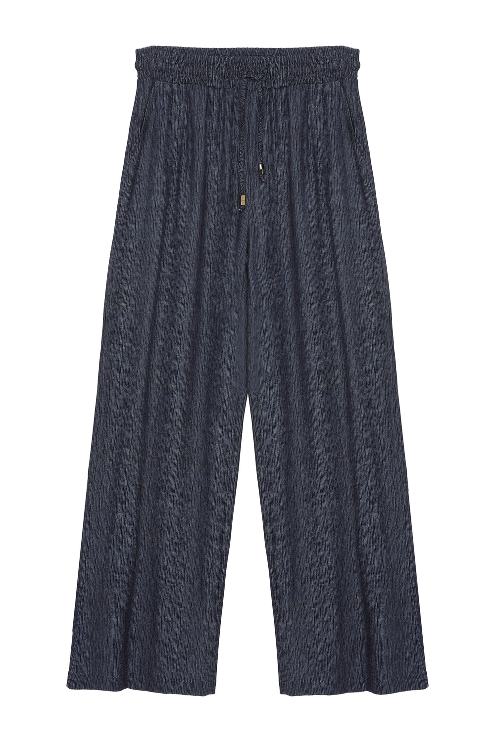 Yüksek Bel Dokulu Pantolon İndigo