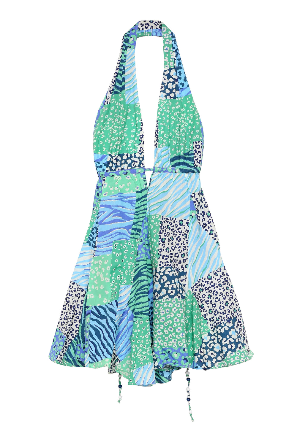 Sırt Dekolteli Desenli Mini Elbise Mint
