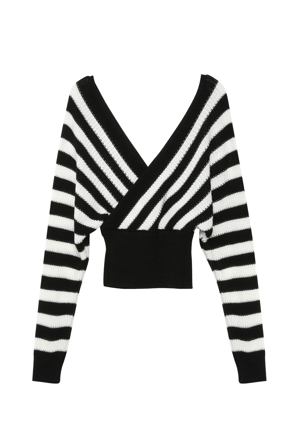 Deep V Neck Crop Blouse Black