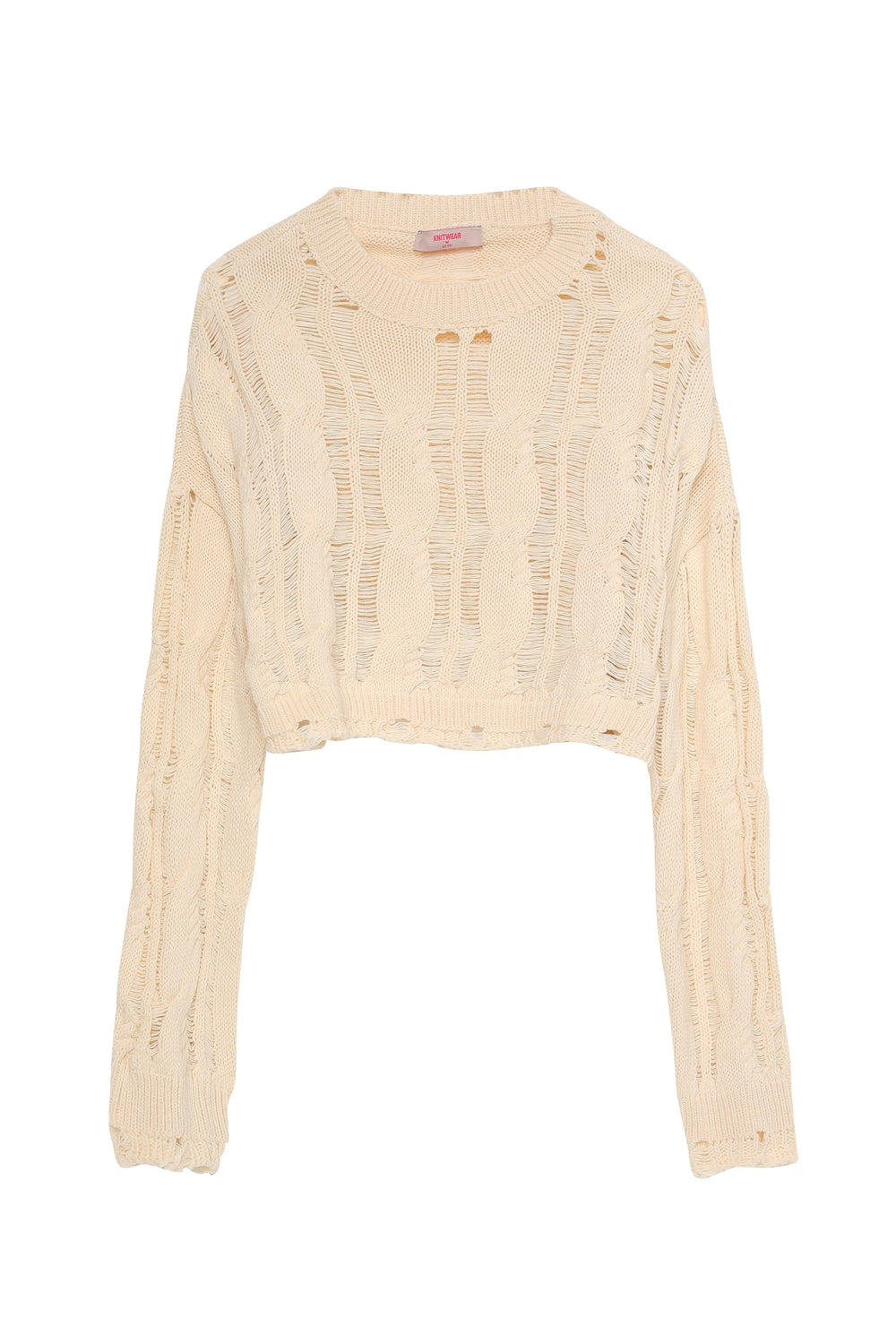 Ripped Detailed Crop Knitwear Cream