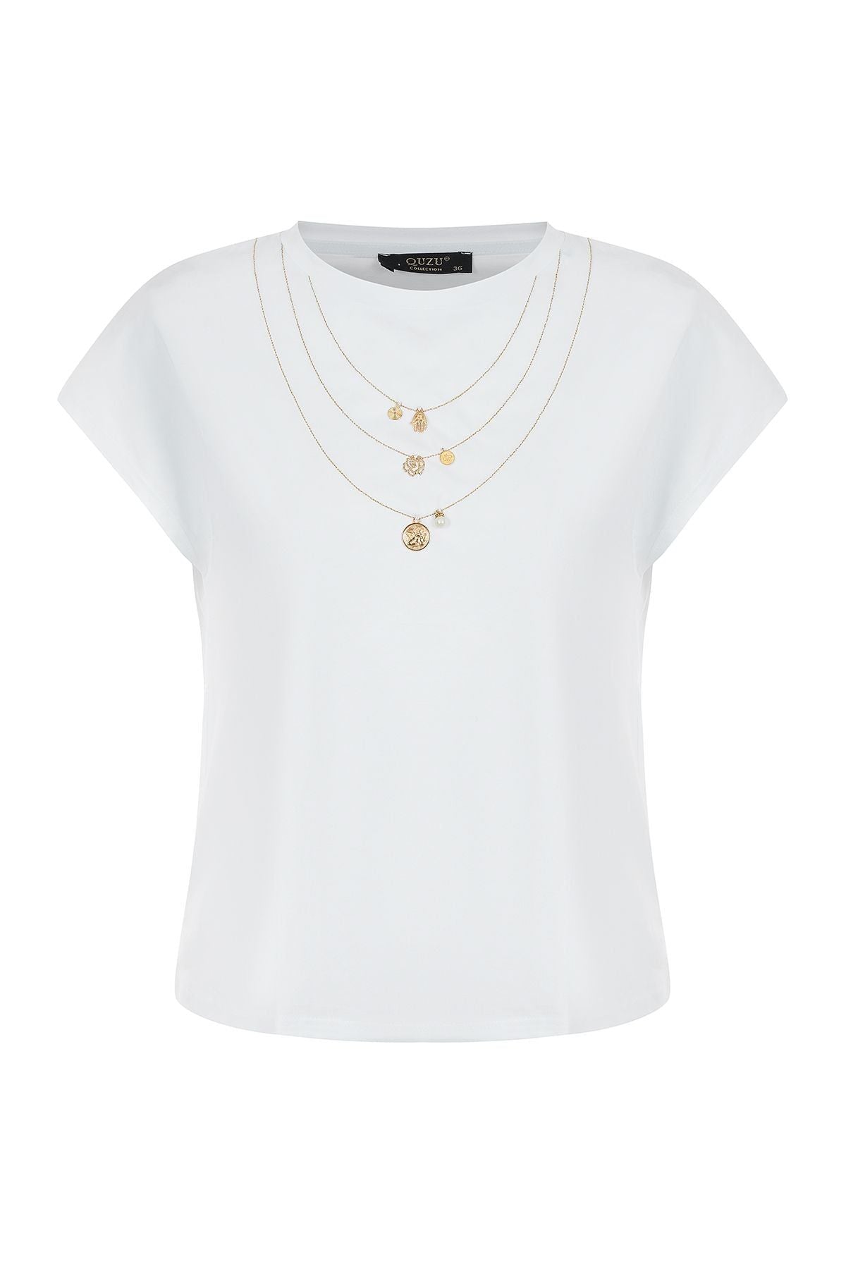 The necklace blouse, which comes out with the integration of the accessories with the fabric, allows you to create more practical combinations. Shine throughout the day with shimmering details added on a plain fabric.