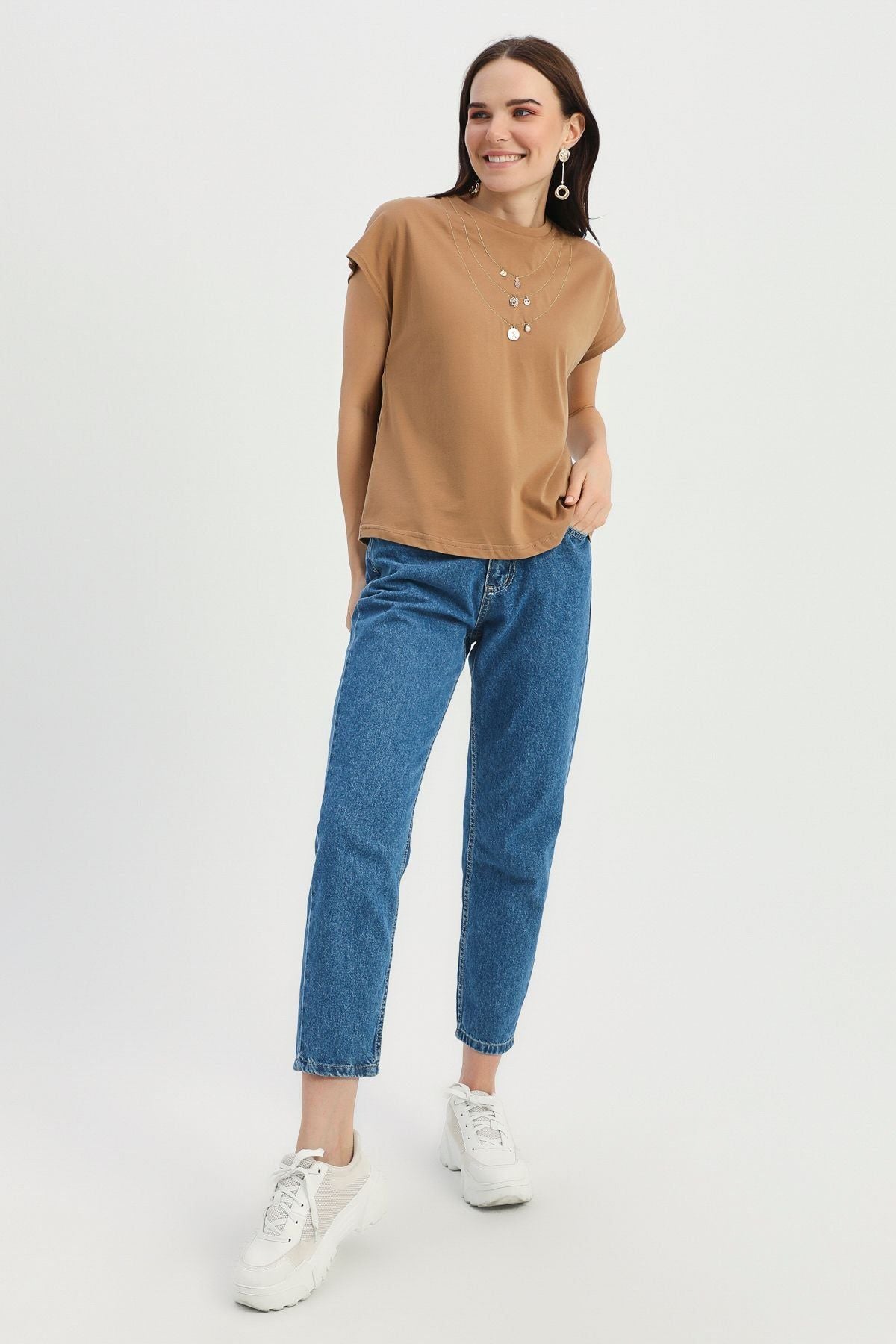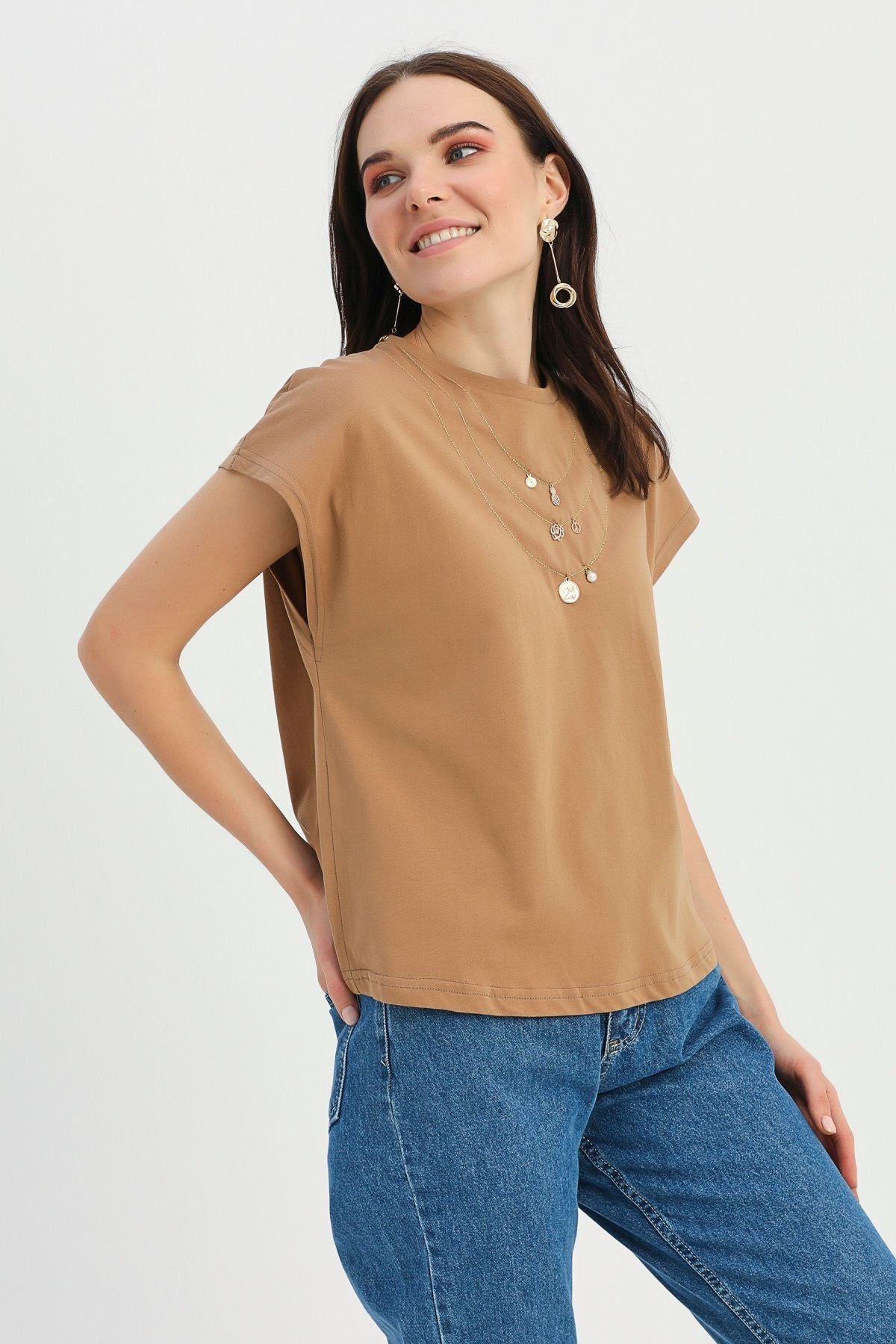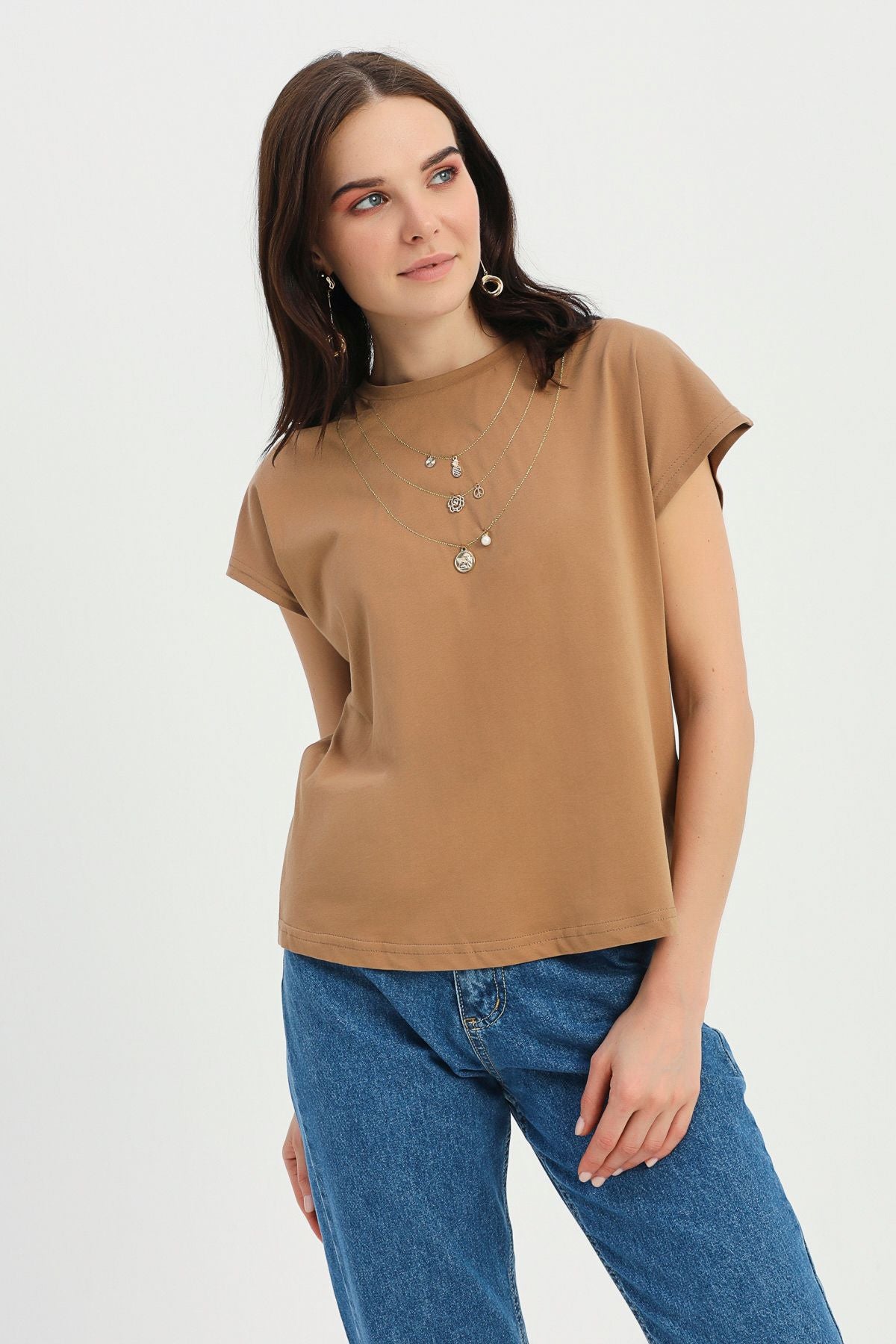 Necklace Accessory Detailed T-Shirt Brown
