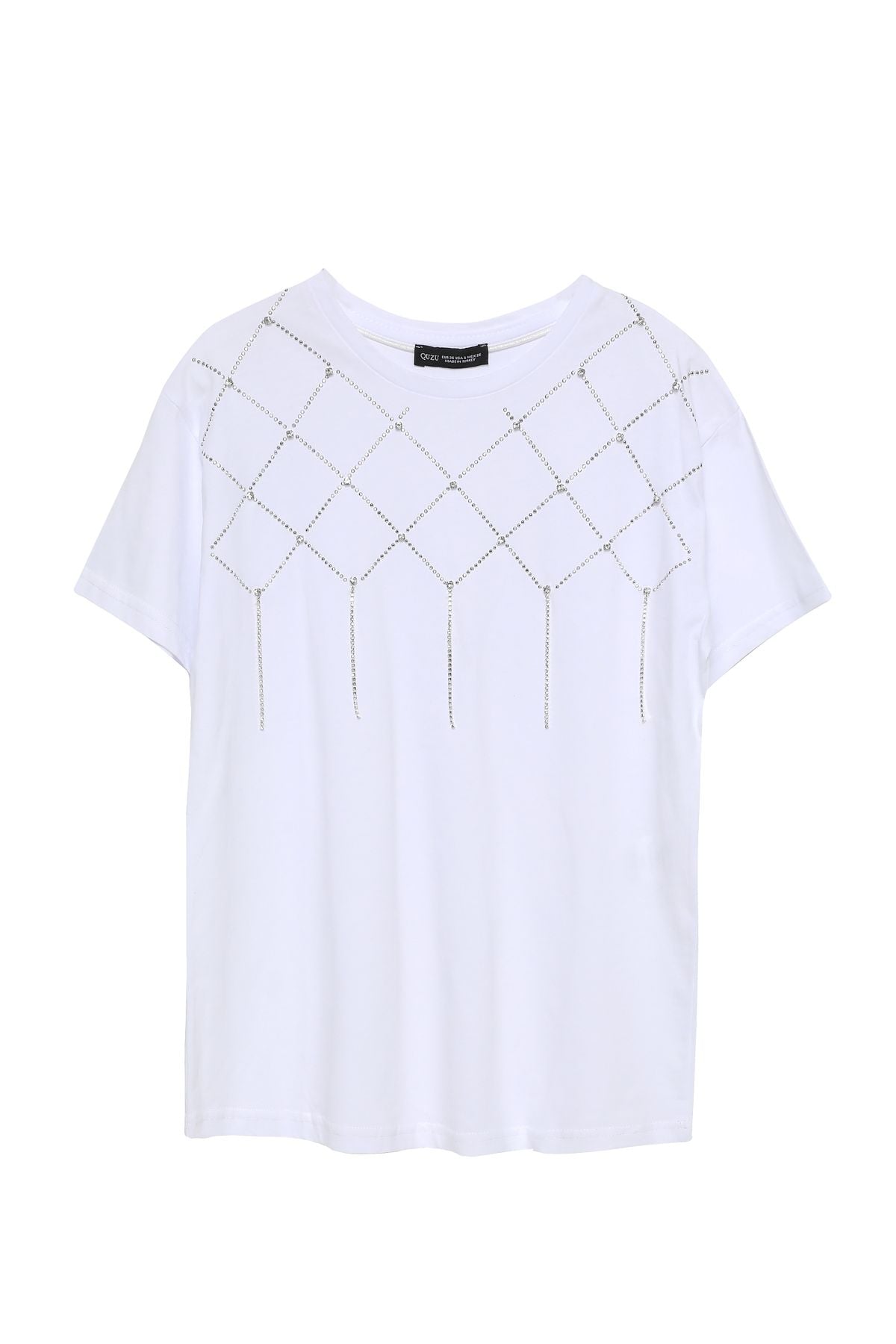 100% Cotton, short sleeve, relaxed fit, stone embroidered T-shirt.