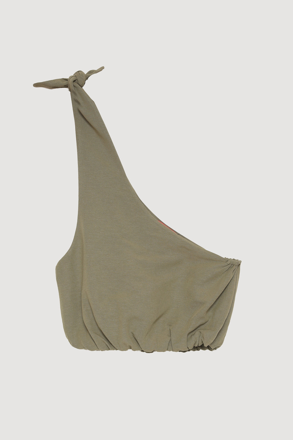 Bağlama Detaylı Tek Omuz Keten Crop Bluz Haki