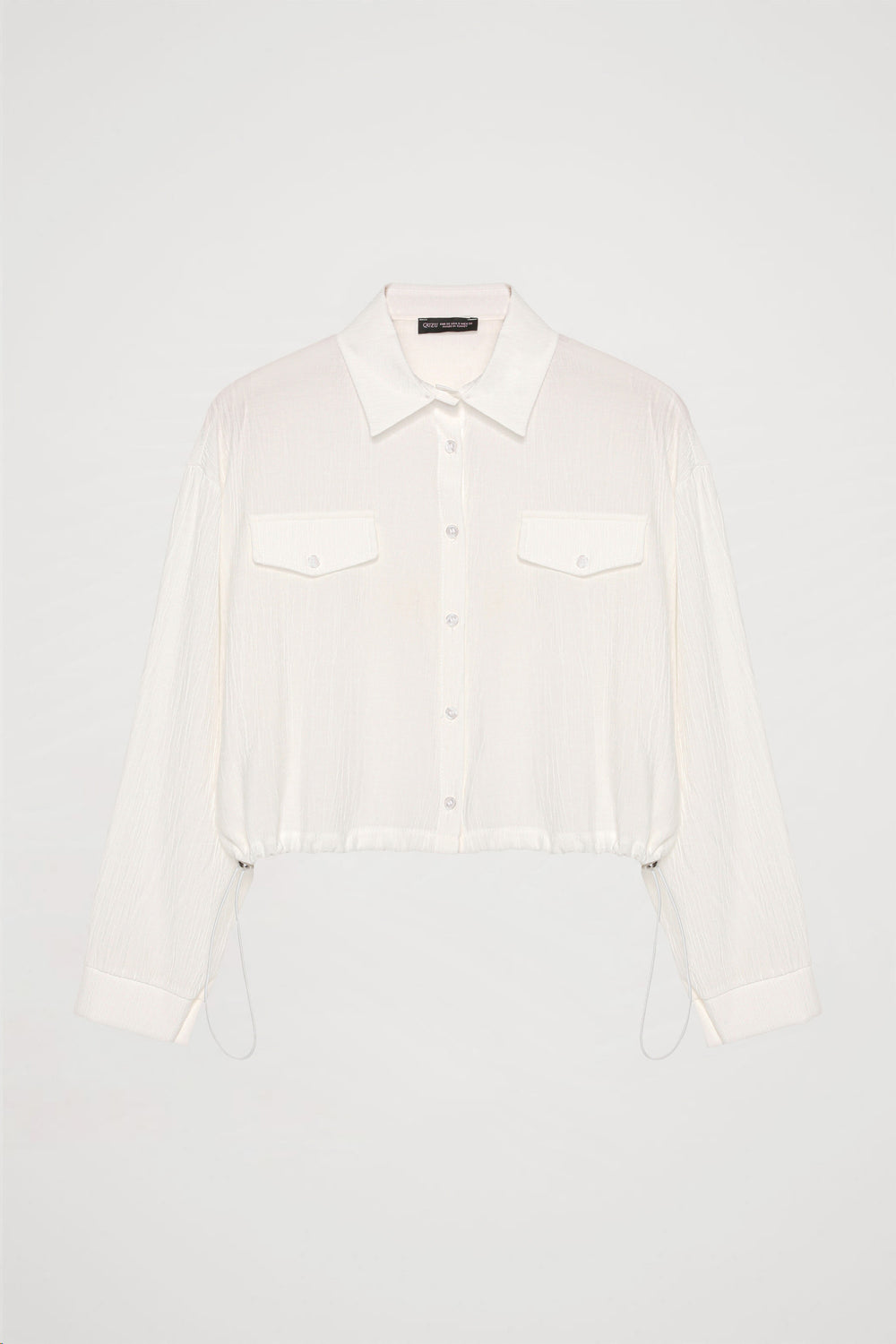 Göğüsü cepli, uzun kollu, düğme kapamalı, beli lastikli büzgülü, rahat kesim, modern ve şık tasarımlı gömlek.