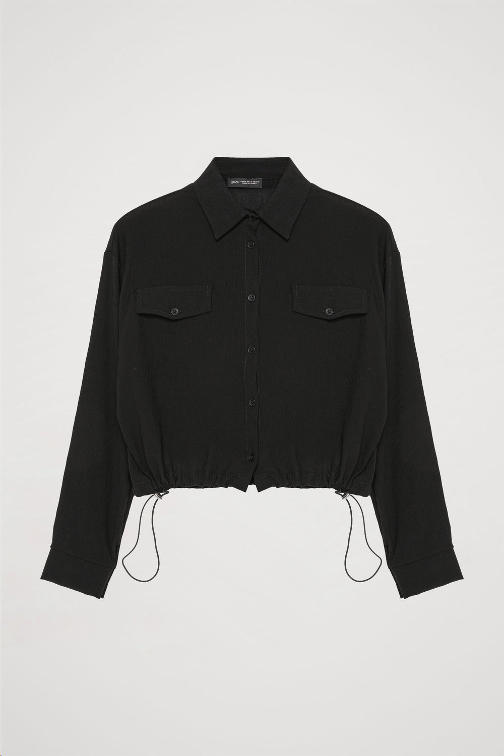 Beli Lastik Detaylı Cep Kapaklı Gömlek Siyah