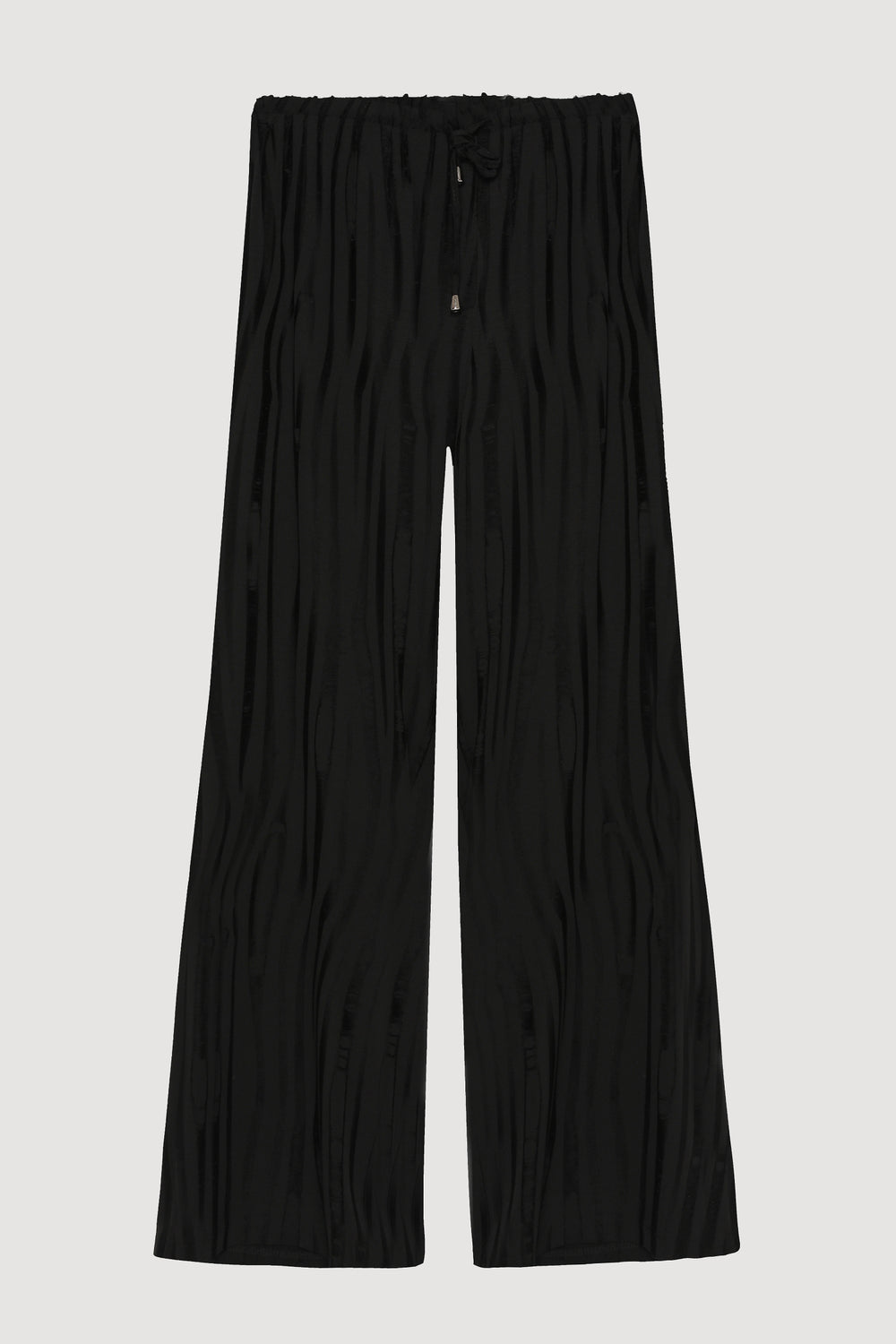 Beli Lastikli Bol Paça Dokulu Pantolon Siyah